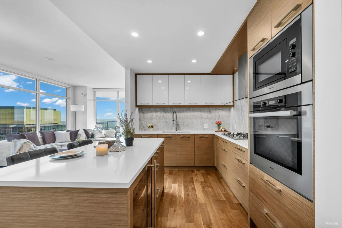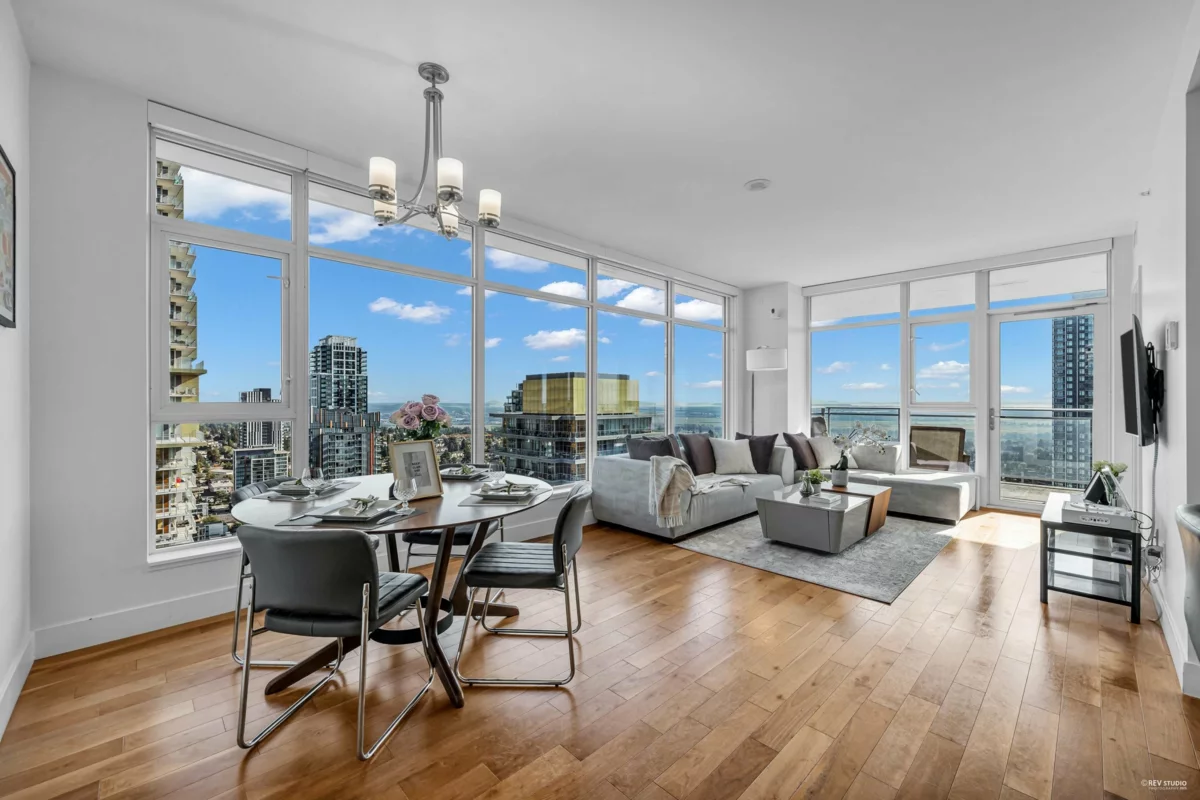 Welcome to Modello, a landmark residence in the heart of Metrotown. This stunning south-east facing 2 brds plus 1 den home provide comfort and luxury, and the versatile den is perfect for a home office or guest suite. Offering an incredible 270 degree panoramic view of the water, mountains and city skyline. Expansive living spaces with floor-to-ceiling windows fill the home with natural light. Geothermal heating and cooling, Brushed walnut and oak hardwood flooring, a marble slab feature wall in the kitchen equipped with premium Miele appliances and Italian Fhiaba fridge. Indulge in first-class amenities with 24-hour concierge, fitness centre, relaxing indoor hot tub and stylish lounge. Perfectly positioned within walking distance to Mall, Skytrain, Central Park. 1 Parking &1 Locker.