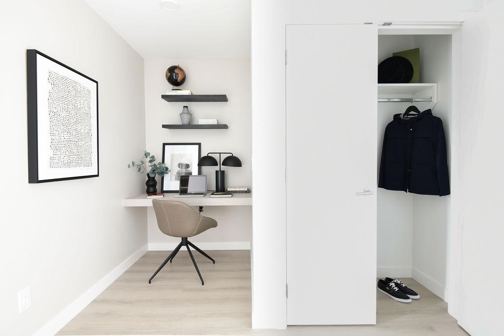 This bright 1 bed & den home features southeast exposure that creates a warm and inviting living space filled with natural light. Smart design makes the most of every square foot to maximize space, and full-size kitchen appliances elevate this 1 bedroom home. The thoughtfully designed kitchen includes a stylish wet/coffee bar with built-in shelving, perfect for entertaining or everyday enjoyment. A double walk-through closet offers generous storage and seamless access from the primary suite to the bathroom. Residents enjoy amenities including a Concierge, Guest Suites, Fitness Centre, Social Lounge, and Outdoor Terrace. Steps from the best of Metrotown shopping, dining, and transit, Riviera delivers exceptional convenience. Quality built by Ledingham McAllister, BC's original home builder.