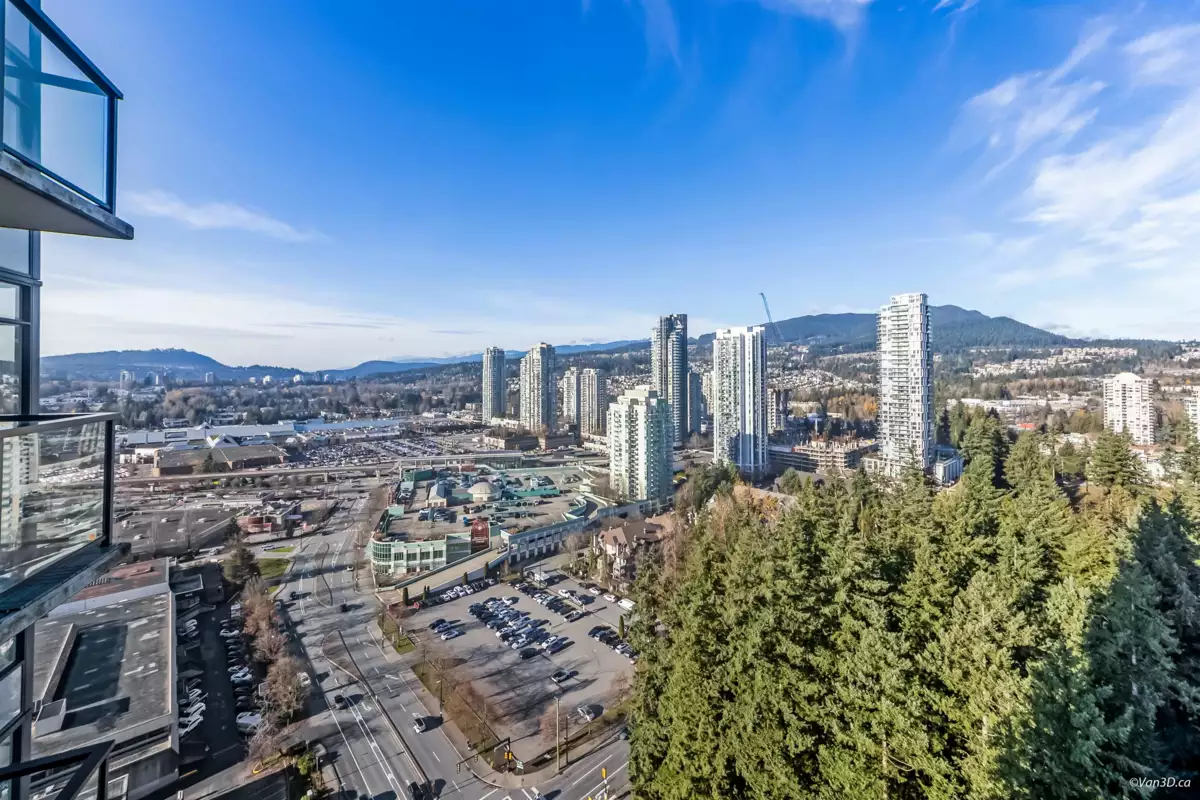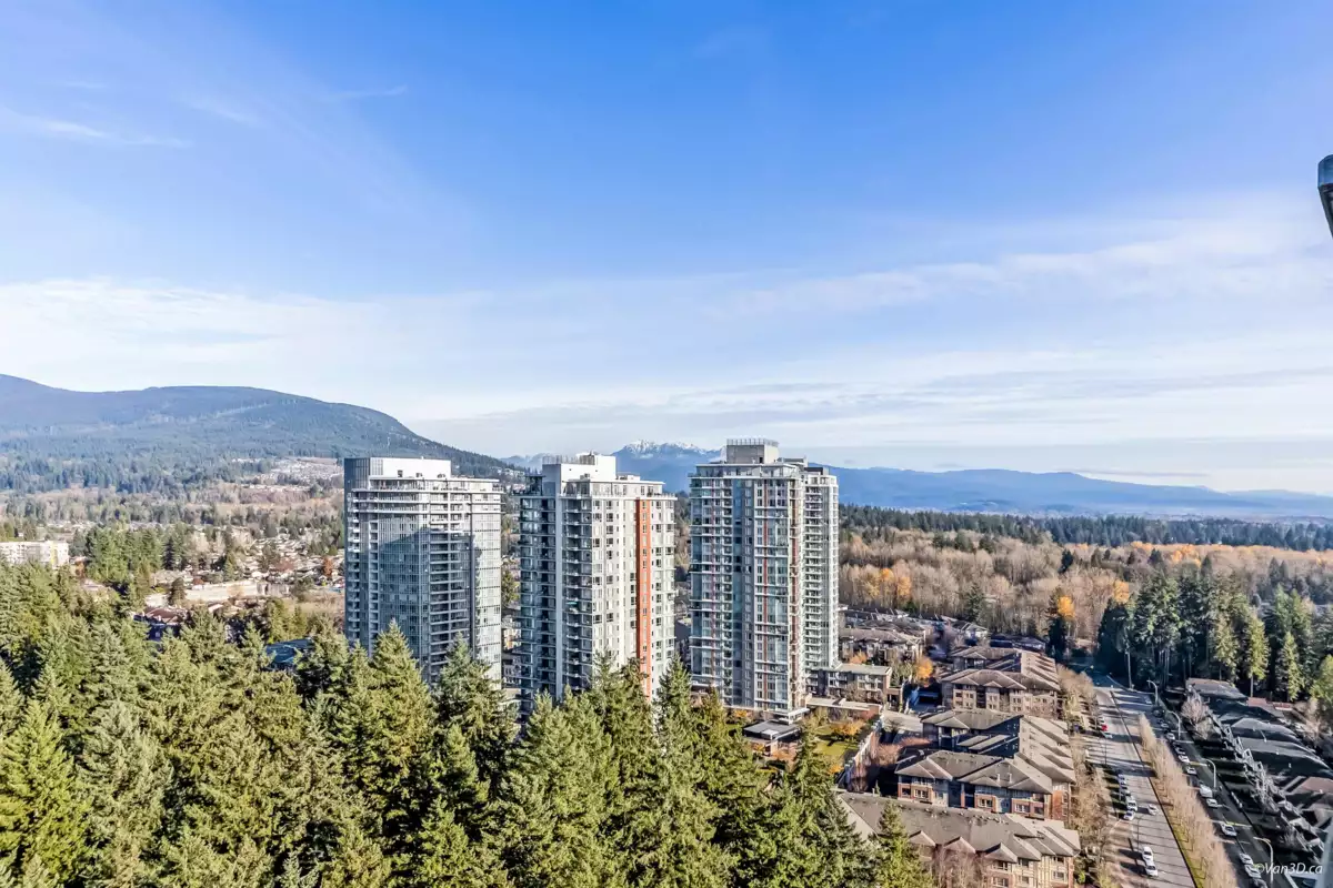 Beautifully kept 2 bed + den North West corner unit on the 30th floor, offers unobstructed view from every room that will take your breath away. Over 1,000 sqft of interior space includes bedrooms on opposite sides for privacy and a functional den ideal for a home office. Chef's kitchen boasts gas stove, s/s appliances and built-in pantry for ample storage. Large Two expansive balconies provide over 250 sqft of outdoor space to enjoy the scenery. Located in the heart of Coquitlam, steps from Henderson Mall, Coquitlam Centre, T&T, SkyTrain, and Lafarge Lake, with all daily conveniences nearby. Building features a wide range of amenities including a fitness centre, outdoor pool, sauna, hot tub, and much more. Includes 1 parking and 1 storage.