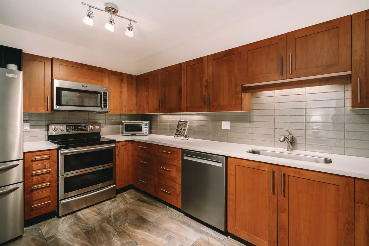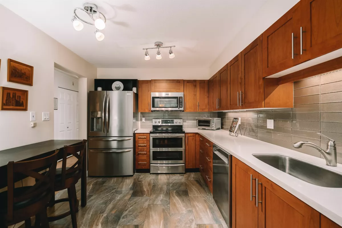 RARELY available, SHOW-STOPPING oversized 3-bedroom condo at Tiffany Shores. Larger than most townhouses, beautifully updated, and steps from the Quay lifestyle! Perfect for young families or down sizers who want room to spread out, this 1566sf. home impresses from the moment you enter. Featuring gorgeous flooring throughout, a sleek chef style kitchen with stainless steel appliances and elegant countertops, renovated bathrooms, and a stunning entrance, every detail shines. The open layout flows effortlessly, with a large laundry room with extra storage, plus 2 convenient parking spots. Enjoy an unbeatable location just steps from Quay Market, Steel & Oak, the boardwalk, SkyTrain access, and everyday essentials. Honestly a one of a kind rare opportunity that doesn't come along often.