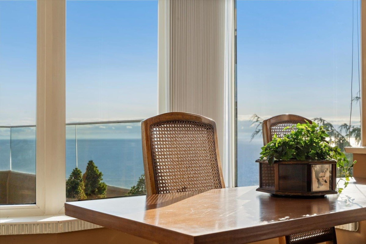 Indulge in luxury in this 2,787 sq ft ocean-view masterpiece, the only residence with its own DOUBLE GARAGE and PRIVATE DRIVEWAY in the prestigious Contessa, a distinguished concrete building. Enter from your garage or LOBBY-LEVEL front door to find a expansive living space with PANORAMIC OCEAN VIEWS, spacious balcony, gas fireplace with marble surround, CHEF'S KITCHEN with granite counters, large island & LUXURY Decor and Sub Zero appliances. TWO PRIMARY SUITES each with their own expansive ensuites & walk in closets, are accompanied by a third bedroom and full bath. European windows & doors, radiant in-floor heating, EV charger and bespoke lighting are only a few features of this extraordinary residence. Walk to the pier, boutiques and fine dining, offering a lifestyle beyond compare!