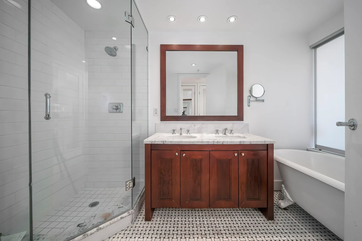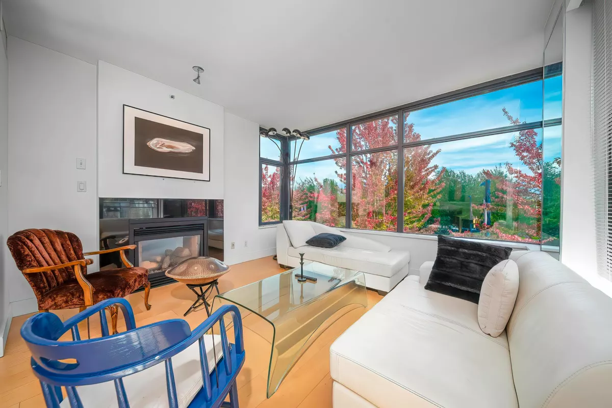 Exclusive 70-unit building "Lumiere" with only 4 homes per floor. This bright corner suite features floor-to-ceiling windows showcasing sweeping water, mountain, park & city views. Open living/dining flows to a covered balcony. Gourmet kitchen offers black shaker cabinets, granite counters, breakfast bar with wine rack, Sub-Zero fridge & Bosch appliances. Primary bedroom enjoys full water vistas, spa-style ensuite with clawfoot tub & double-sided gas fireplace. Large den easily converts to a 3rd bedroom. Dark walnut engineered floors, central A/C, 2 parking & locker. Amenities: lounge, gym & cedar infrared sauna—all in one of Vancouver’s most coveted neighborhoods.