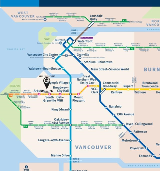 As we explore the community, you'll notice that public safety is a top priority. The closest bus station, Westbound W Broadway @ Pine St, is conveniently located 0.23 km away from the property, making it easy to get around without a car.