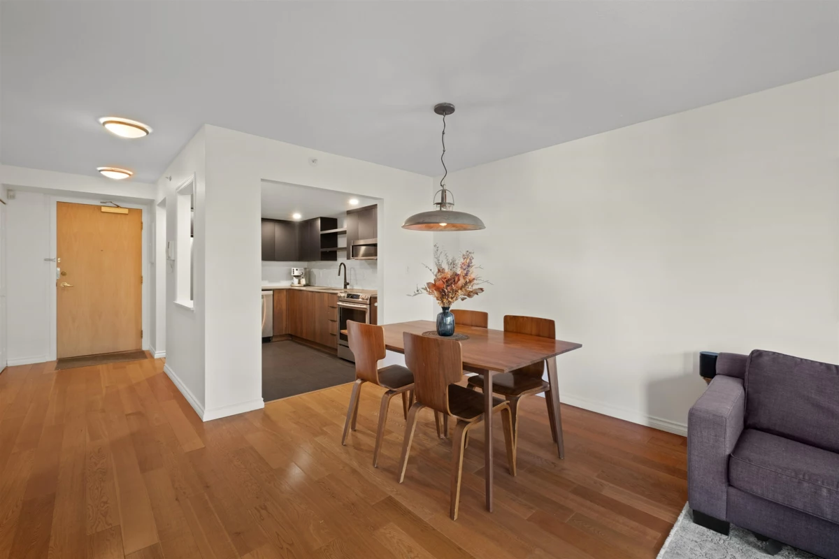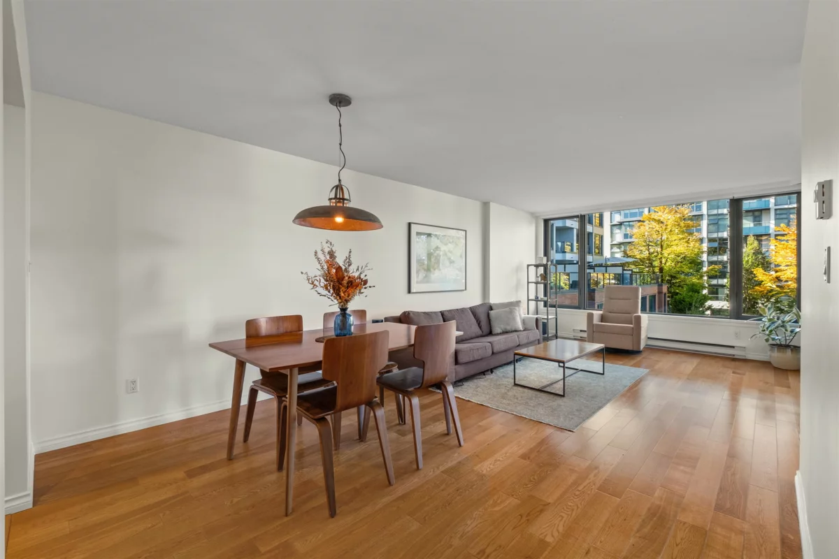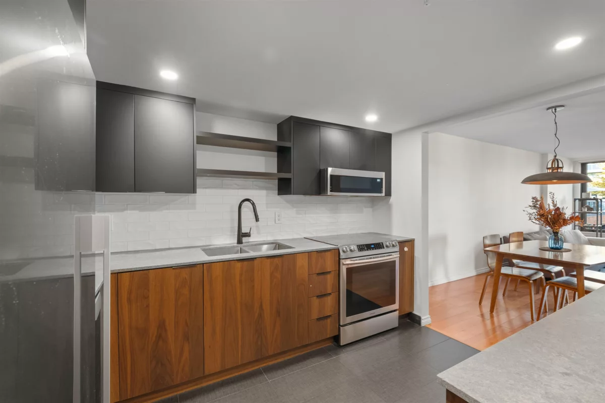 Meridian Cove – a premier concrete residence, fully rain-screened in 2023 with new triple-pane windows and is now EV-ready. This beautifully renovated 2-bed, 2-bath home showcases hardwood floors, a modern kitchen with stone countertop, ss appliances, and updated bathrooms. Thoughtfully designed by Urban Presentations, the cohesive interior exudes sophistication. A quiet west-facing outlook enjoys views of the tranquil inner courtyard. This suite incl. 2 parking and a locker. Residents enjoy resort-style amenities incl. a saltwater pool, hot tub, sauna, steam room, gym, garden courtyard, library, and hobby rooms. Steps to Granville Island, West 4th, and the new Burrard Slopes Park. Very proactive and sought after building! Only 600m from the Broadway Line Extension. OPEN SUN 2 to 4:00