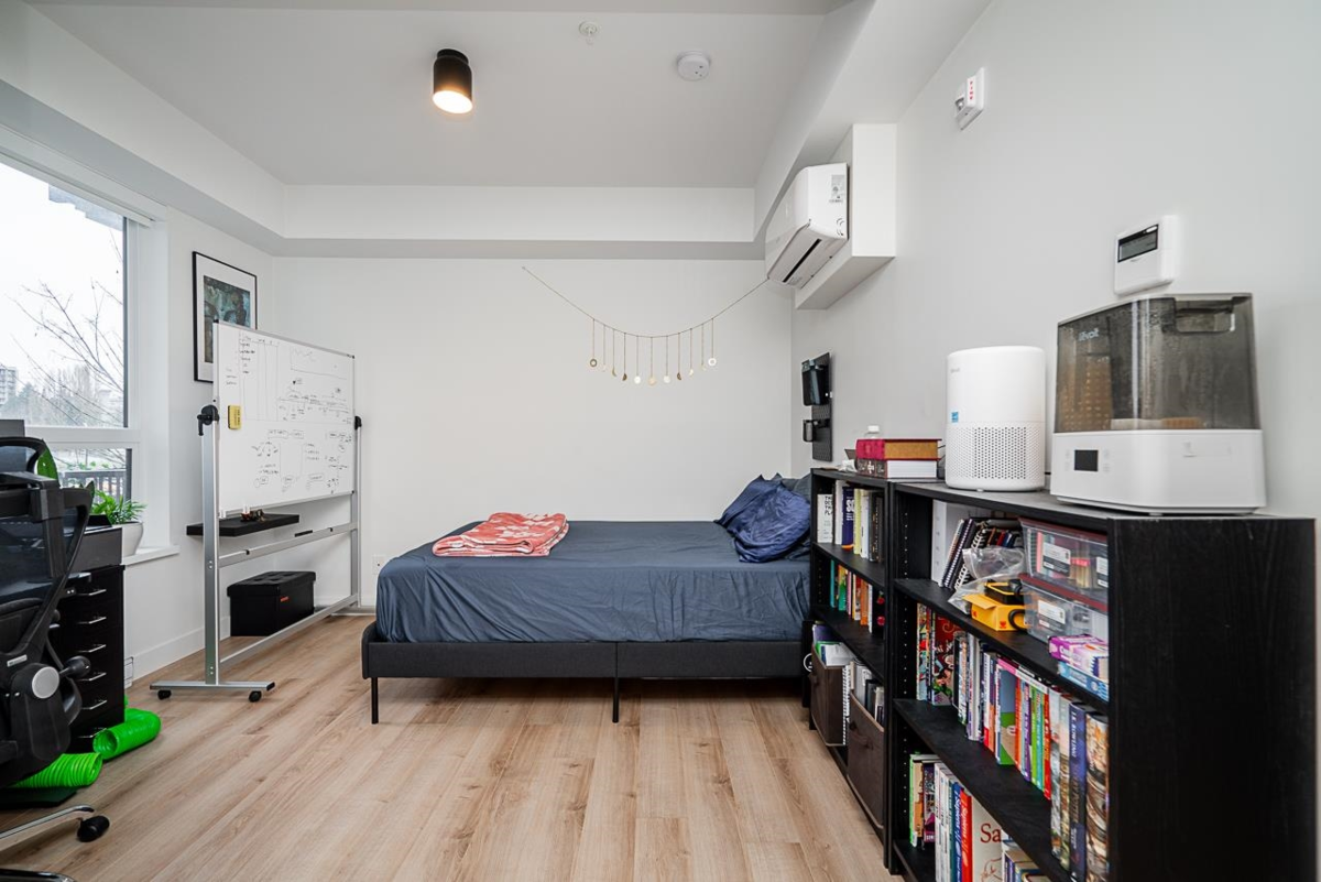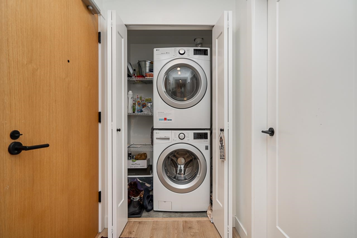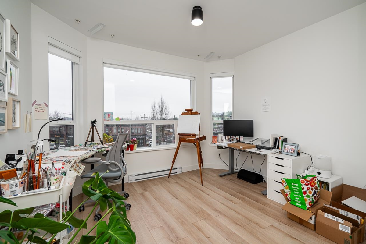 Welcome to Upper Montrose! This coveted 3-bed+Den, 2-bath, 1,247 SF unit features a large deck, soaring 9' ceilings, and a stylish brick feature wall. The chef-inspired kitchen boasts quartz counters, a spacious island, stainless steel appliances, under-cabinet lighting, and a gas cooktop. Enjoy year-round comfort with built-in A/C. The primary bedroom offers a spa-like ensuite with dual sinks and a glass walk-in shower. Building perks include a boardroom with workstations, a courtyard with a playground, and a shared garden. Located in historic downtown Abbotsford, you’re steps from trendy shops, restaurants, breweries, and the farmers market. Includes 2 parking and is pet-friendly (2 pets allowed with restriction).
