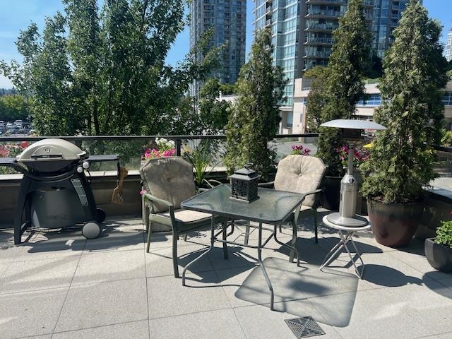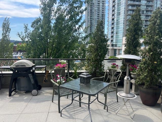 Welcome to LEVO! An iconic building located in the heart of Coquitlam. Fantastic "456 SQFT PATIO" great for BBQing / entertaining & offering GREAT views. This stunning 2 bedroom, 2 bathroom unit boasts 885 square feet of living space. THE UNIQUE BONUSES of this unit are 9'4'' ceilings, parking on the same level. This unit features satellite bedrooms, Gourmet Kitchen w/Commercial gas range (only suite w/gas piped in below the top floors, gas included in maintenance fee). Building amenities include a 30,000 sq ft rooftop garden & a large recreation room. BOASTING A VERY HANDY LOCATION - Just steps to Coquitlam Centre, Aquatic Centre, Lafarge park, all levels of schools - also including Douglas College & Lincoln Skytrain Station. BLDG is equipped with EV charging.