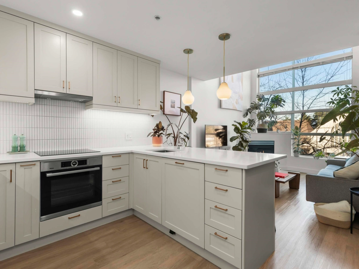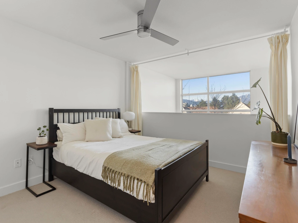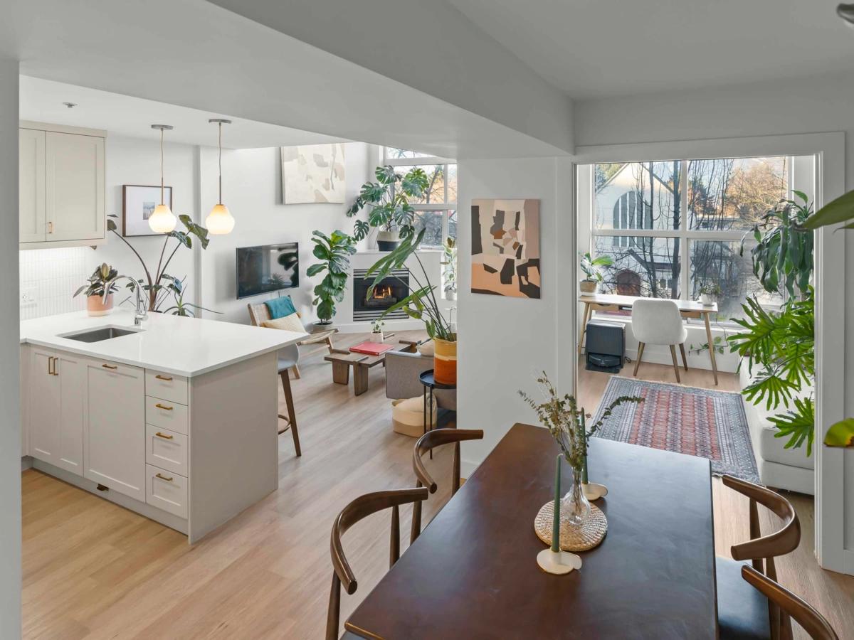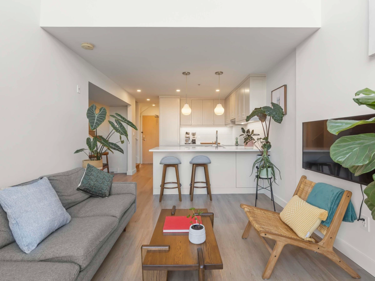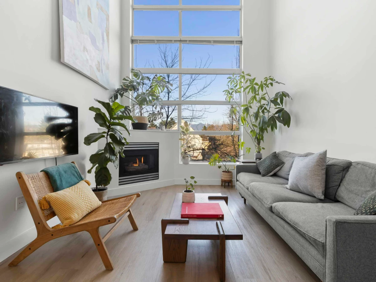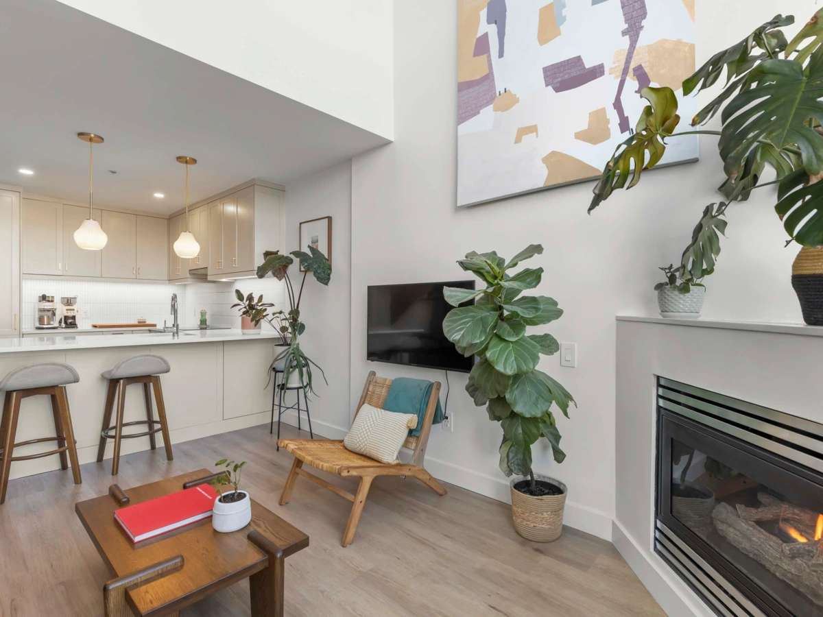 Welcome home to this beautifully renovated 2 bed, 2 bath in the heart of Mount Pleasant. Offering 879 sq ft of thoughtfully designed living over two levels. This home features a cozy living room with 17” vaulted ceiling and floor-to-ceiling windows showcasing stunning North Shore Mountain views. It is packed with hard-to-find features, bedrooms on separate levels for privacy, sleek lighting, a gas fireplace and a stunning renovated kitchen and bathrooms with no wasted space throughout. The home is bright, inviting, and perfectly positioned to take in the mountain outlook while you entertain with friends. Just steps to Main & Fraser Street’s best cafes, craft breweries, grocery stores, shopping, sushi, and transit. 1 parking, large storage locker, and a pet-friendly building. OH Jan 31: 2-4