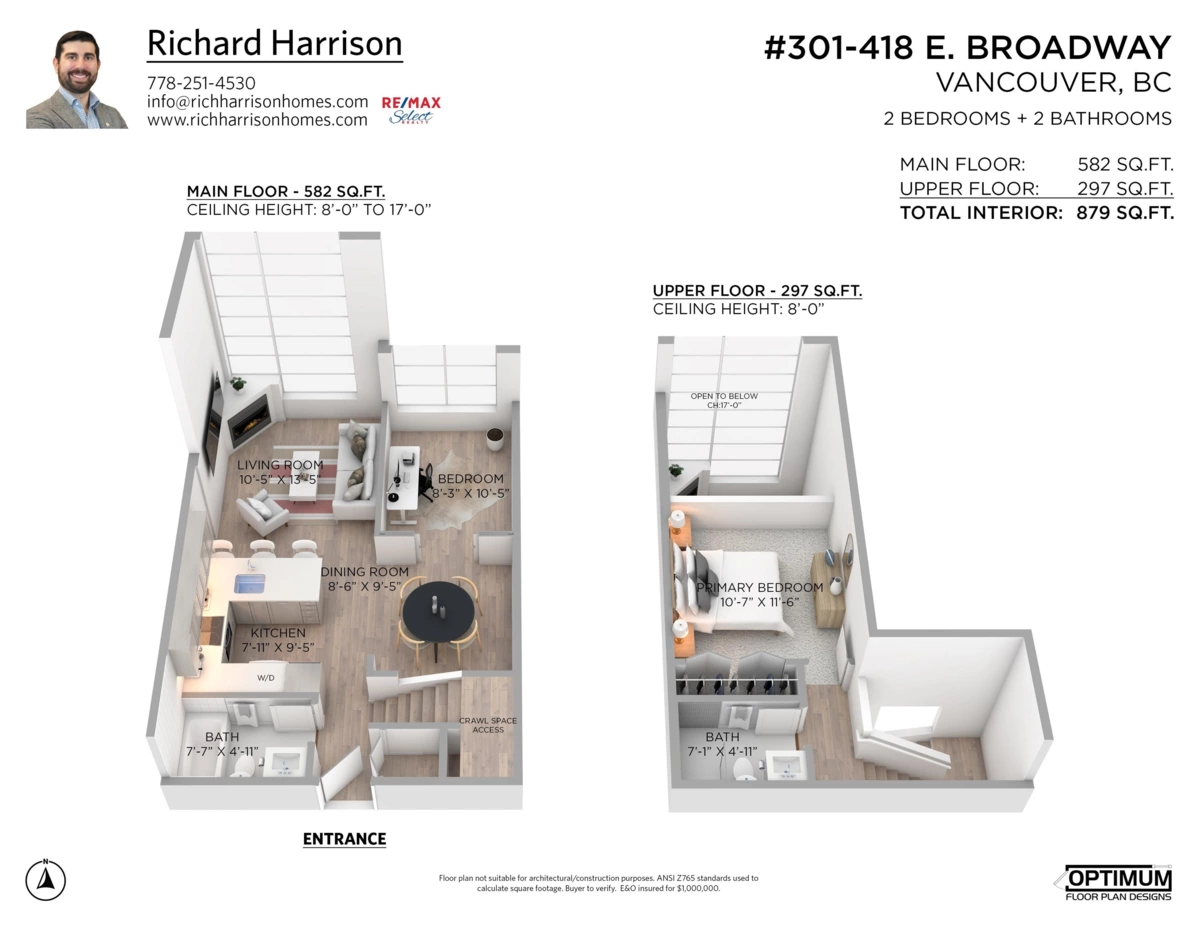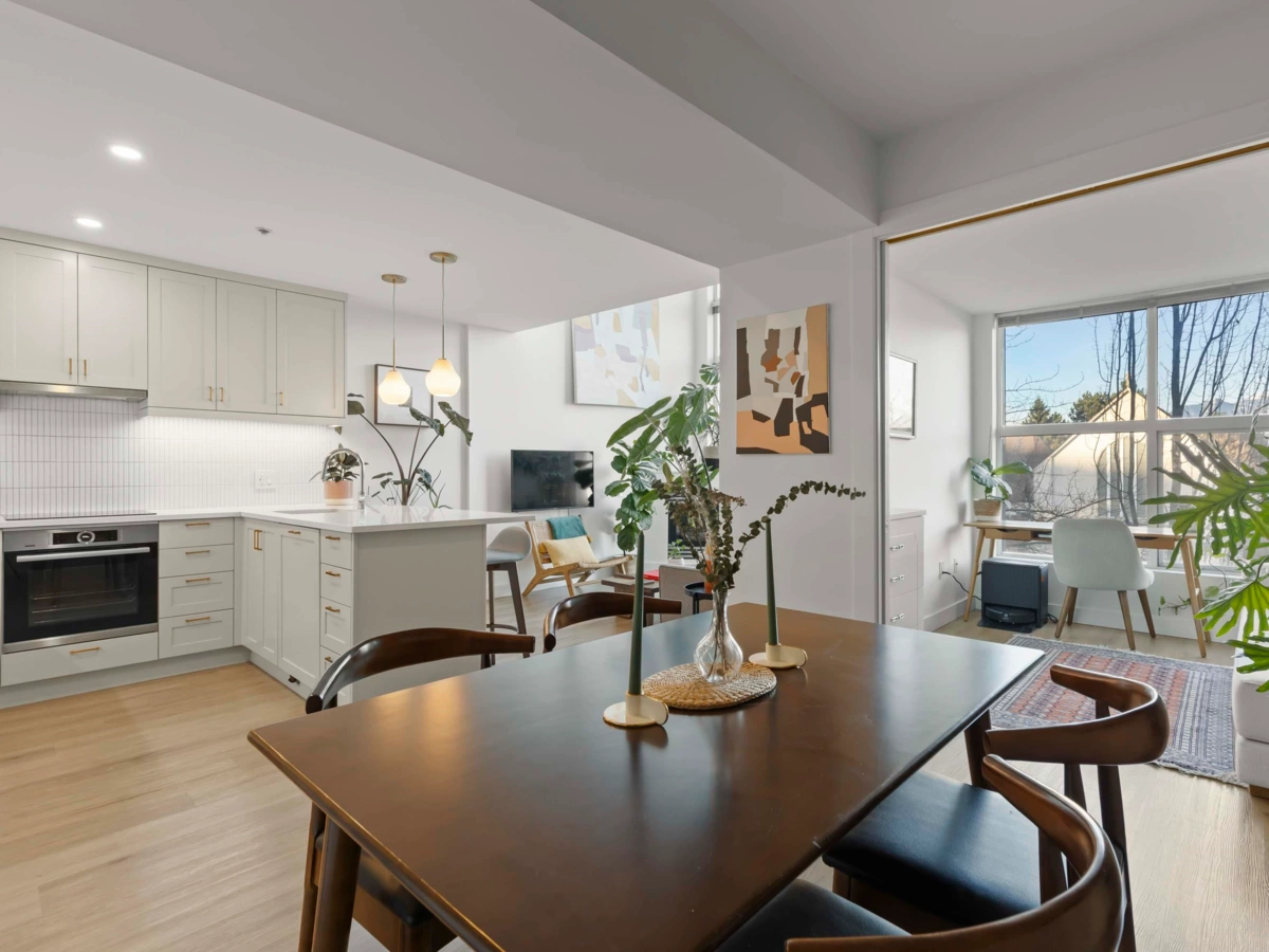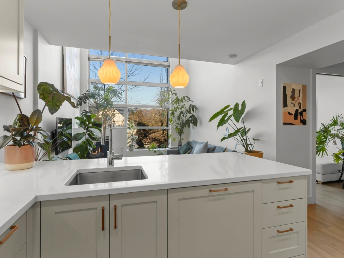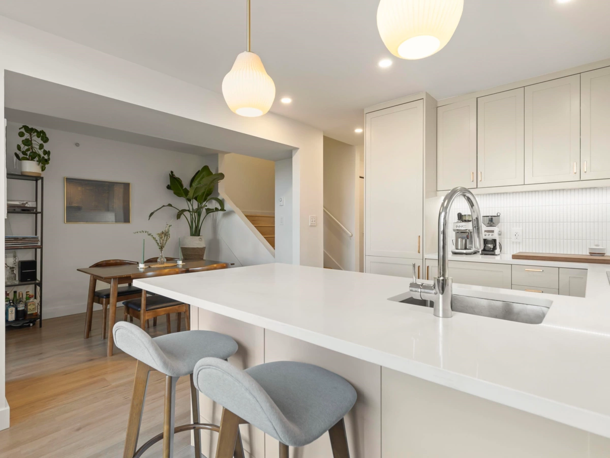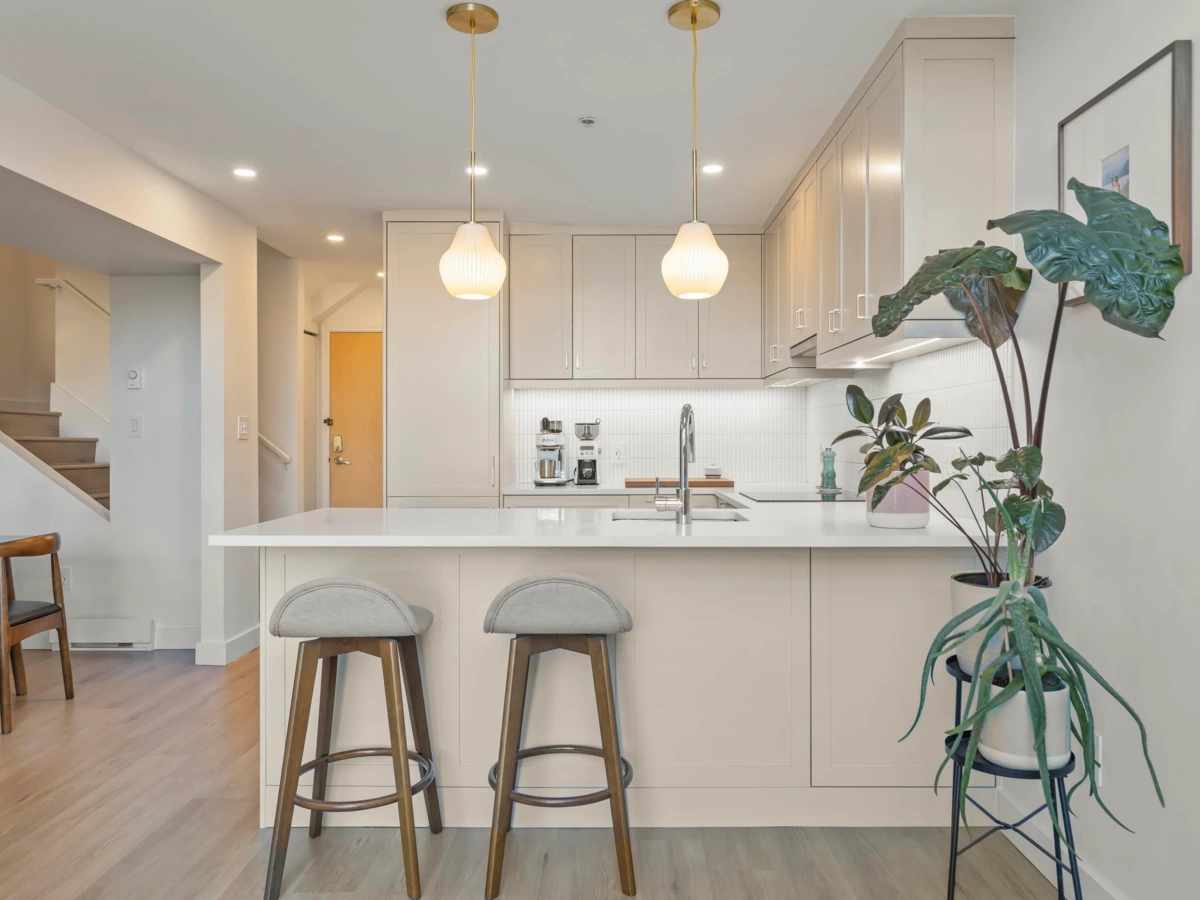 Welcome home to this beautifully renovated 2 bed, 2 bath in the heart of Mount Pleasant. Offering 879 sq ft of thoughtfully designed living over two levels. This home features a cozy living room with 17” vaulted ceiling and floor-to-ceiling windows showcasing stunning North Shore Mountain views. It is packed with hard-to-find features, bedrooms on separate levels for privacy, sleek lighting, a gas fireplace and a stunning renovated kitchen and bathrooms with no wasted space throughout. The home is bright, inviting, and perfectly positioned to take in the mountain outlook while you entertain with friends. Just steps to Main & Fraser Street’s best cafes, craft breweries, grocery stores, shopping, sushi, and transit. 1 parking, large storage locker, and a pet-friendly building. OH Jan 31: 2-4