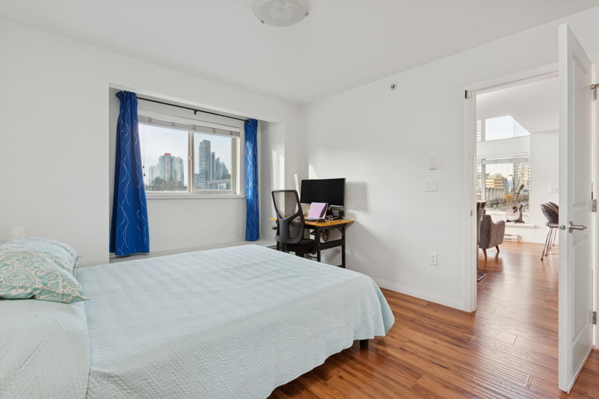 Bright and spacious 3 BED + 2 BATH PENTHOUSE in the heart of Metrotown. Rare corner unit with a highly functional layout, 12 FT vaulted ceilings, floor-to-ceiling windows, recessed lighting, and hardwood flooring throughout. Open-concept chef’s kitchen features granite countertops, stainless steel appliances, modern cabinetry, and breakfast bar. Large primary bedroom with spa-style ensuite and deep soaker tub, plus two additional bedrooms and full guest bath. Private sun-filled balcony. Includes 2 parking stalls and 1 storage locker. Well-maintained boutique building just 5 minutes to Metropolis at Metrotown, Royal Oak SkyTrain, shopping, dining, and transit. Excellent value in a prime Burnaby location.
