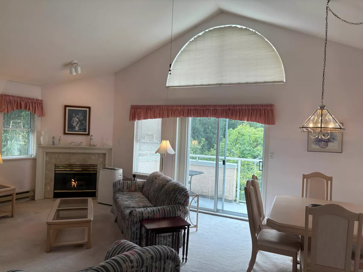 Super opportunity! Rarely available! Top floor corner suite at the much sought after "Barker Place". Spacious 1194 sq. ft. layout with two bedrooms & two full bathrooms. You'll love the large entertaining sized living room that can accommodate lots of your house sized furniture. Also featuring a 14 foot high vaulted ceiling & a cozy gas fireplace. Open concept gourmet kitchen w/a centre island & a breakfast eating area. Separate dining room. Large primary bedroom w/a shelved walk in closet & a lovely ensuite w/a skylight. A bright & cheery suite that is surprisingly private. Convenient in suite laundry. Big storage locker. A very well maintained building. An easy walk to Skytrain, Central Park, Crystal Mall/Metrotown shopping, restaurants & Chaffey-Burke Elementary School. Excellent value!