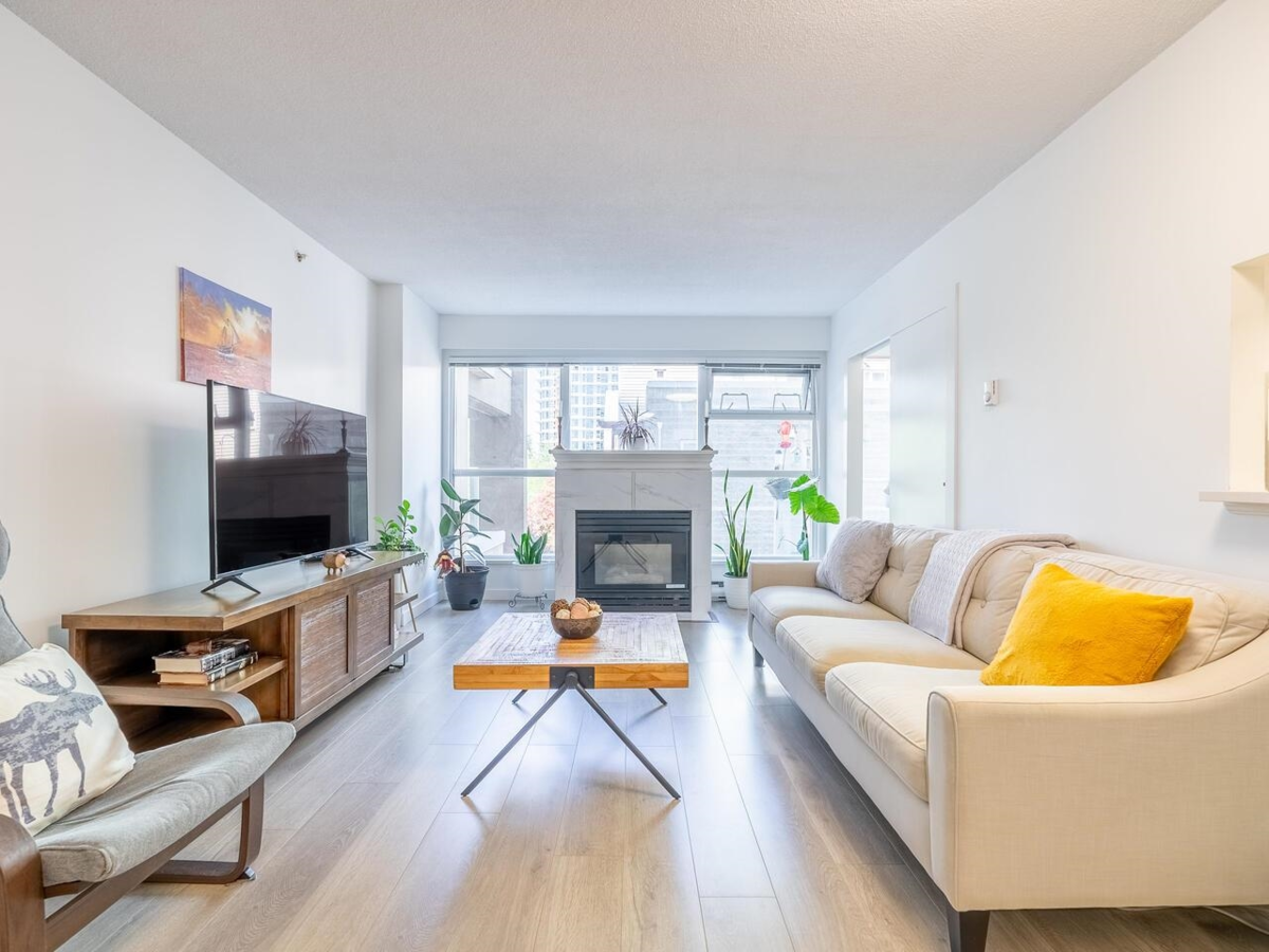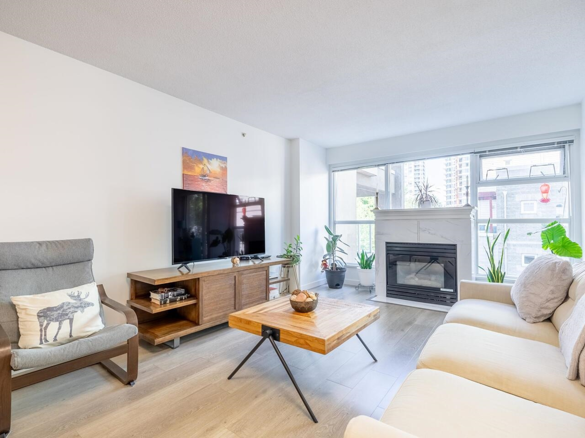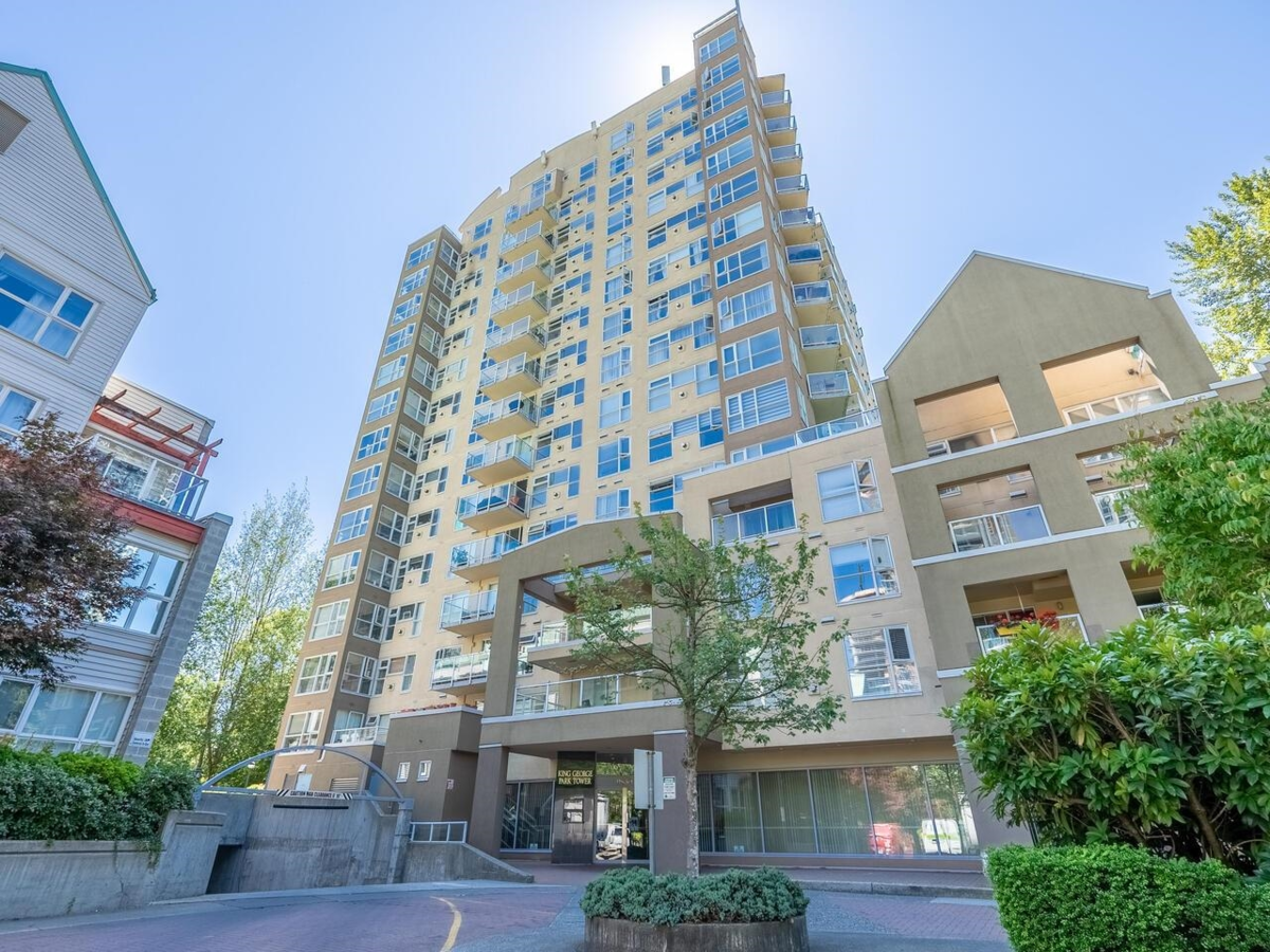 Welcome to King George Park-your gateway to Surrey's central hub! This beautiful & unique 1Bed/1Bath+Den North-facing suite features new S/S appliances, quartz countertops, laminate flooring & cozy Gas FIREPLACE in spacious open-concept living/dining rooms. Extra-large bedroom comes with a Walk-In Closet and fancy Semi-Ensuite; plus BONUS DEN that can be used as a home office or second bedroom. Central Location-Steps from King George Station, Central City Mall, SFU, Holland park, community centre, Surrey Memorial Hospital etc. Well maintained building with plumbing recently upgraded. Amenities include gym, club house, bike room, and ample visitor parking. Unit was fully renovated in 2021! 1 Parking/1 Locker. Don't miss this AMAZING opportunity for investors and first time buyers!