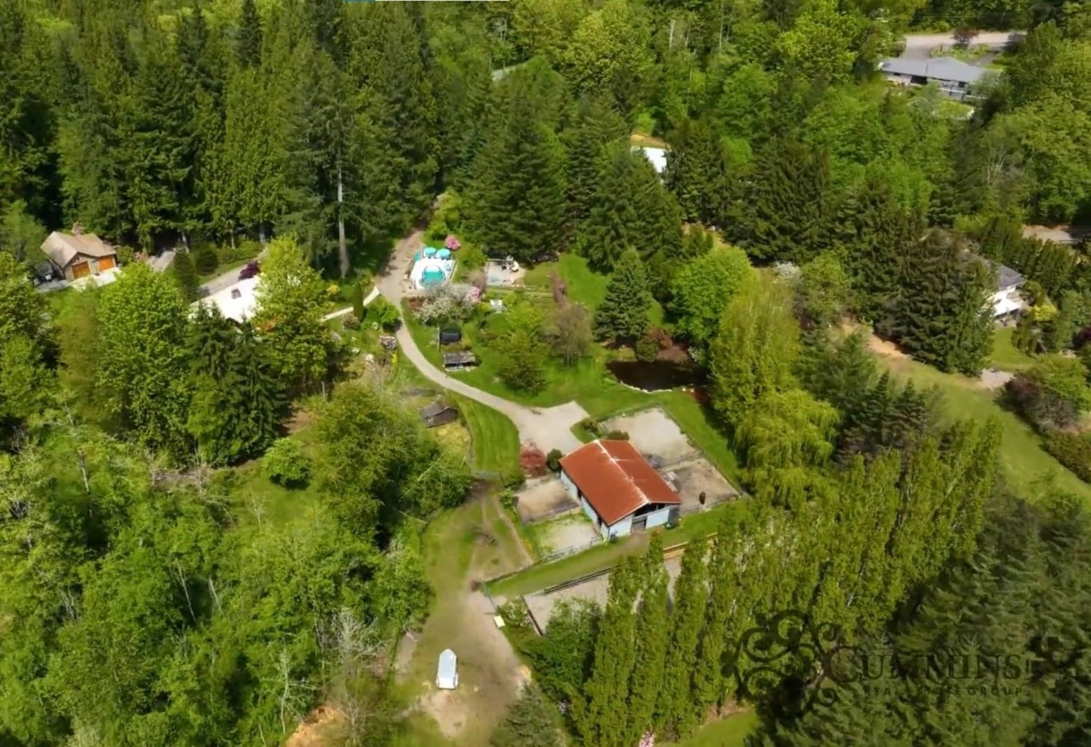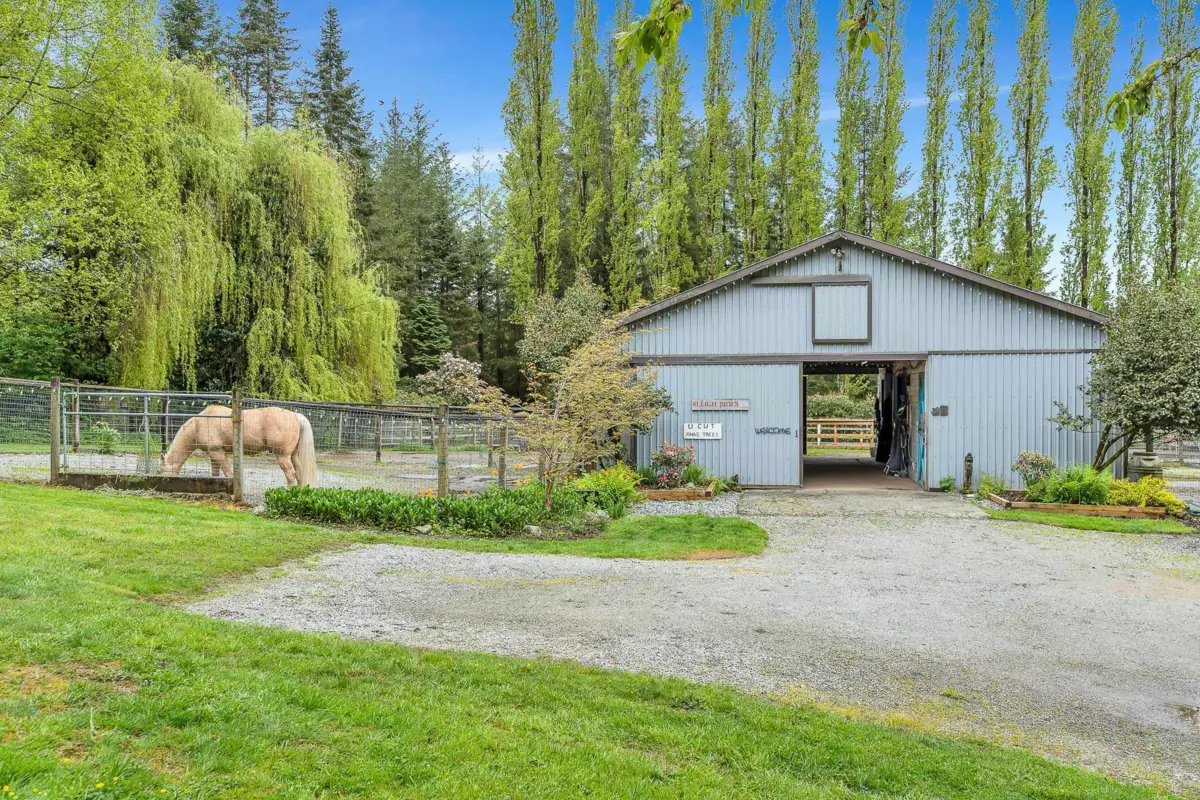 7 ACRES FOR THE HORSES & AMAZING LOG RANCHER W/BASEMENT SUITE Pan Abode Home W/beautiful upgrades: Kitch/SS appls, island W/stove/seating, & pantry. Lvngrm is bright W/log beams/wood ceiling, FP, & picturesque windows/doors W/access to 898 sq ft deck. Mbdrm on main W/WI closet & 5 piece ensuite. Daylight bsmt Suite designed by Property Bros, has 3 bdrms & 2 bthrms W/private covered patio. HORSE OWNER? 4 indoor/outdoor stall barn/rubber mats, auto water bowls, 2 rooms/Tack & feed, & riding arena W/sand/lit for night riding + plenty of fenced pasture for the horses to roam. Extra Features: IN Ground pool, 3 ponds, shed, 2 bthrms/heated flrs, security lights & detached 900 sq ft shop w/ oversized bay 17' ceiling + storage mezzanine. Spectacular landscaping. Click virtual tour!