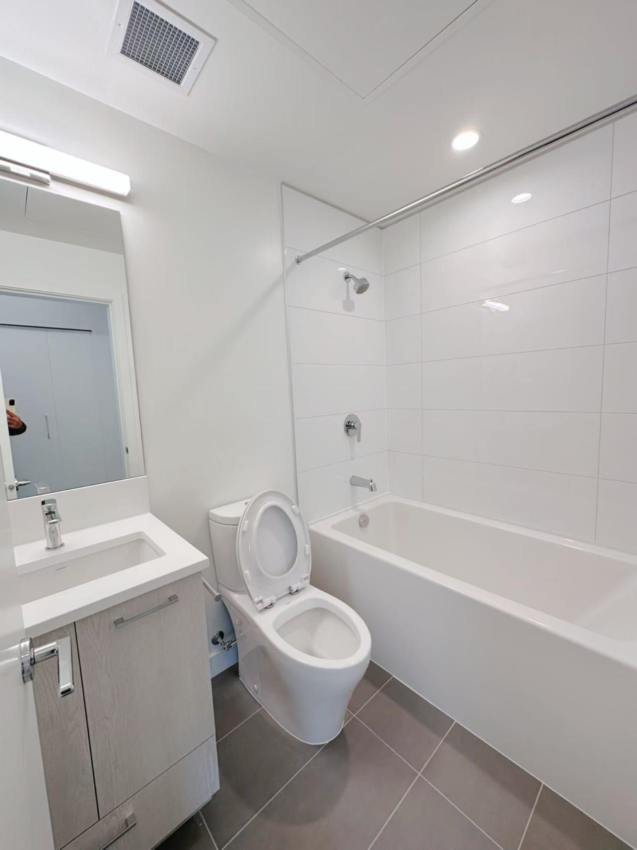 Welcome to the newly built Q5 near Surrey City Centre! This bright 1 bed, 1 bath home, offering peace and privacy. Featuring a modern open layout, sleek kitchen with quartz counters and stainless appliances, spa-inspired bath w/deep soaker tub, this home combines style and function. Enjoy fantastic amenities including a fitness centre, party room, games room, fireside lounge, co-working space, courtyard with BBQ area, and community garden. Quick 8min walk to Gateway SkyTrain, close to parks, schools, shopping, and restaurants-Q5 offers unbeatable convenience for commuters and investors alike. Includes 1 locker and 1 parking.