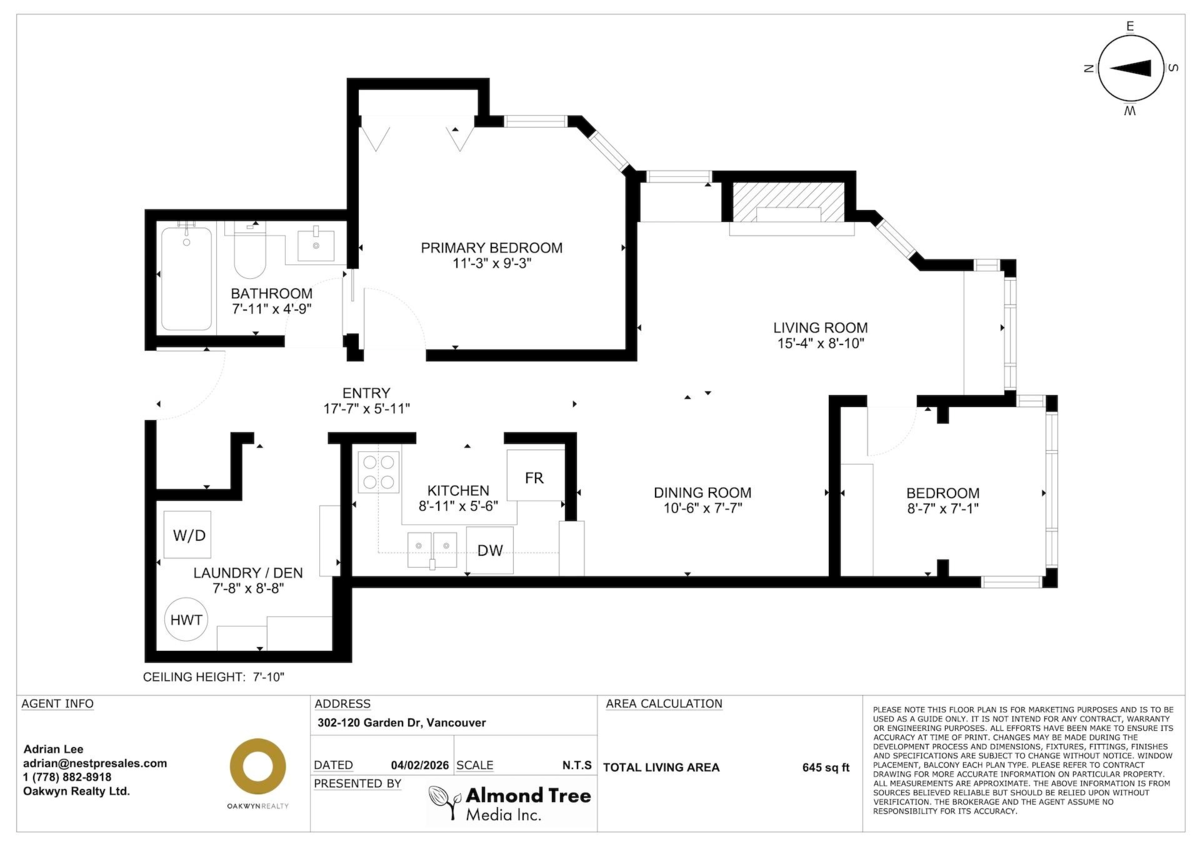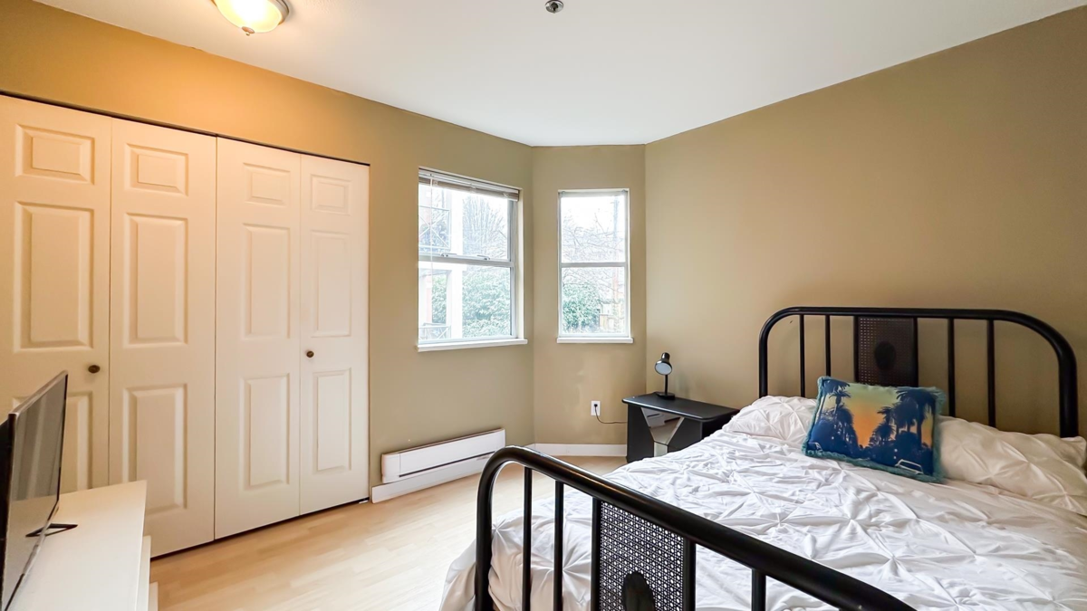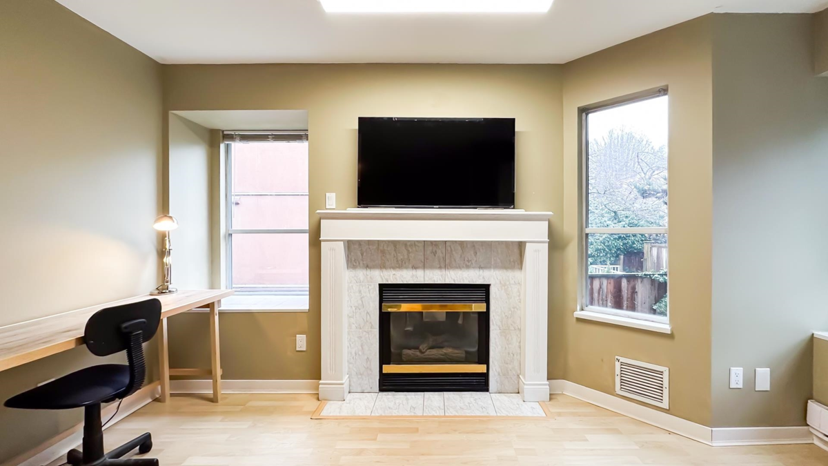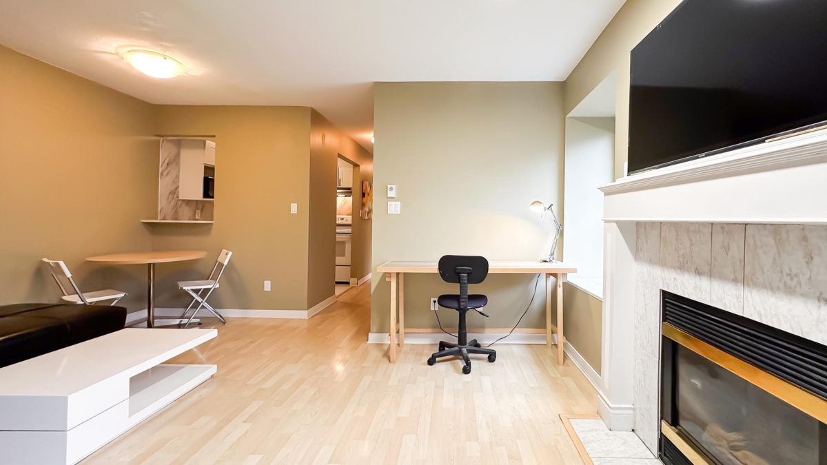 Corner 1-bed + den unit with bright open layout, gas fireplace and enclosed balcony that can serve as a bedroom or extra storage. Spacious living room, insuite laundry and plenty of interior storage. Located in a well-kept, quiet building just steps to transit and minutes to everything Hastings has to offer. Excellent access to transit makes commuting easy to SFU Burnaby, BCIT (Burnaby or Downtown) or UBC (Downtown). 10 Minutes drive to downtown. Only 1 block from Pandora Off-Leash Dog Park and close to shops, services and community amenities. Perfect for first-time buyers or investors. Open House Saturday and Sunday February 14+15 2PM-4PM