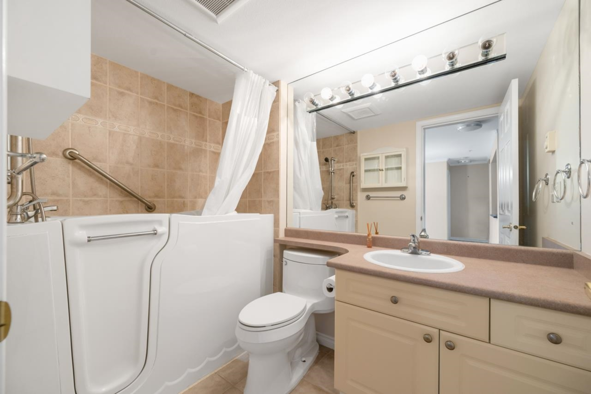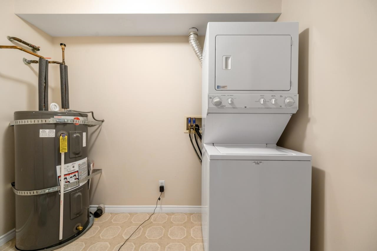 Bright and spacious 2-bedroom, 2-bathroom home offering a functional layout with bedrooms are separated by living room for added privacy. Tucked away on the quiet side of the building, enjoy serene views of lush landscaping from your oversized windows. Perfect for downsizers or someone looking for a well-maintained unit to move right in! Highlights include a large laundry room with bonus storage, a generous primary bedroom with massive walk-in closet & private ensuite, soft cork flooring, cozy gas fireplace (gas included in strata), & a private balcony. New roof, water tank, and range hood. Includes 1 parking, 1 storage, and is pet-friendly! Steps to Semiahmoo Shops and Restaurants.