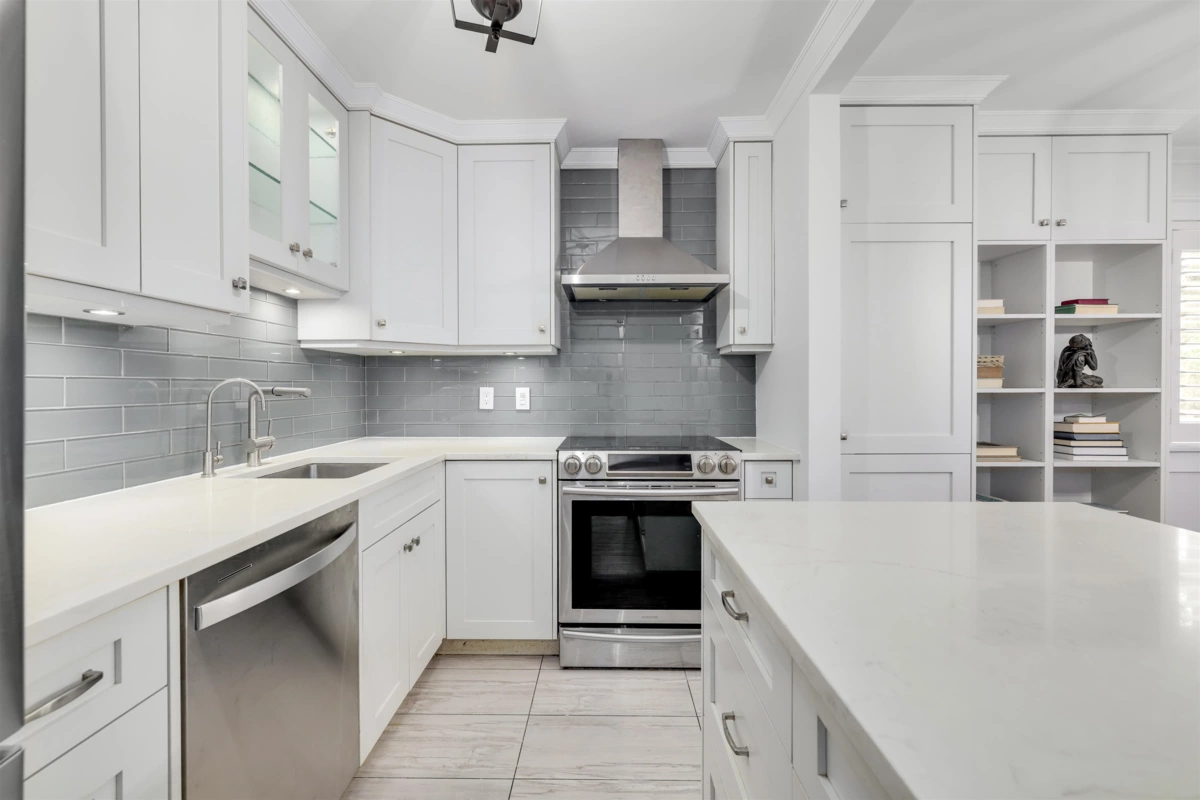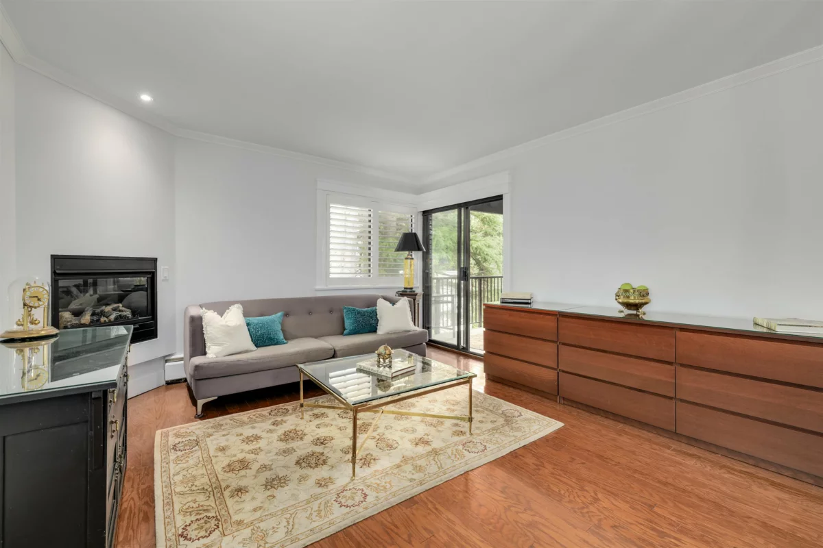 Stylish corner condo that feels more like a home! Featuring real hardwood floors, crown mouldings and timeless shaker cabinetry with under-cabinet lighting. The kitchen shines with stone countertops, a spacious island with storage, stainless steel appliances, and a lit glass display cabinet to showcase your favourites. Enjoy two pantries with slide-outs, built-in shelving, and abundant storage throughout. The bright primary suite boasts a walk-through closet to the ensuite, while the main bathroom is finished with elegant marble tile. California shutters dress the windows, while fresh paint and a cozy fireplace add warmth and charm. 5 minute walk to all that upper Johnston has to offer: Shopping, restaurants, banking, groceries. It's a must see!