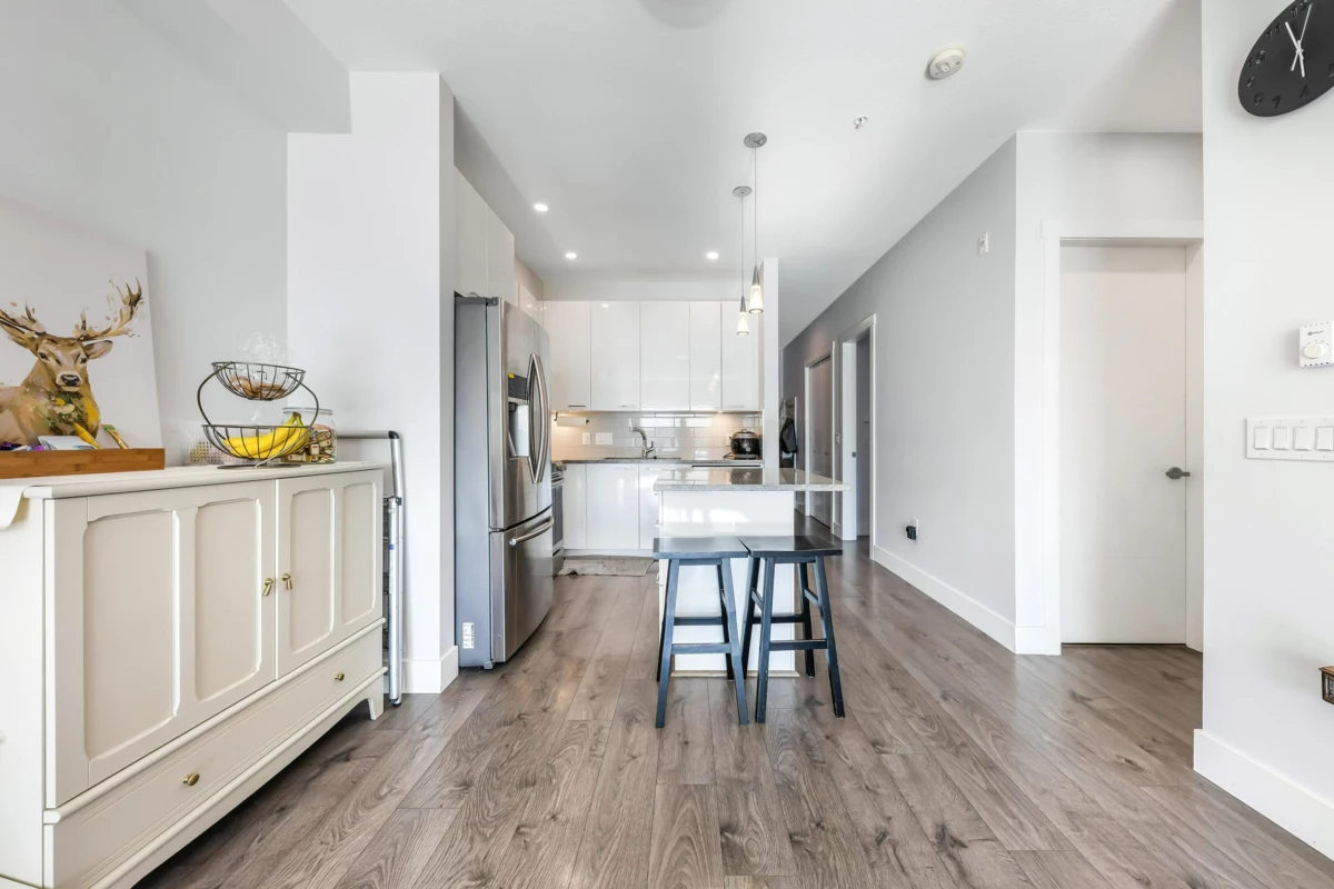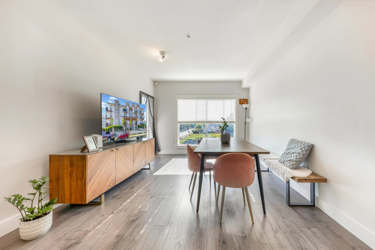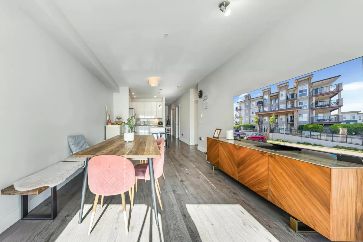 Welcome to The Benjamin in Langley City! This 3rd-floor west-facing 2 bed + den, 2 bath home offers open city views and bright natural light. Enjoy 9' ceilings, large windows, and laminate flooring in a modern open-concept layout. The kitchen features quartz countertops, stainless steel appliances, and an island with seating. The primary bedroom includes a walk-in closet and a double-sink ensuite. A second full bath and in-suite laundry add convenience. Relax on your private balcony at sunset. Comes with 1 parking and storage locker. Located near parks, schools, shops, and the future SkyTrain. A perfect blend of comfort, style, and location. Openhouse August 24, 31, 2-4pm
