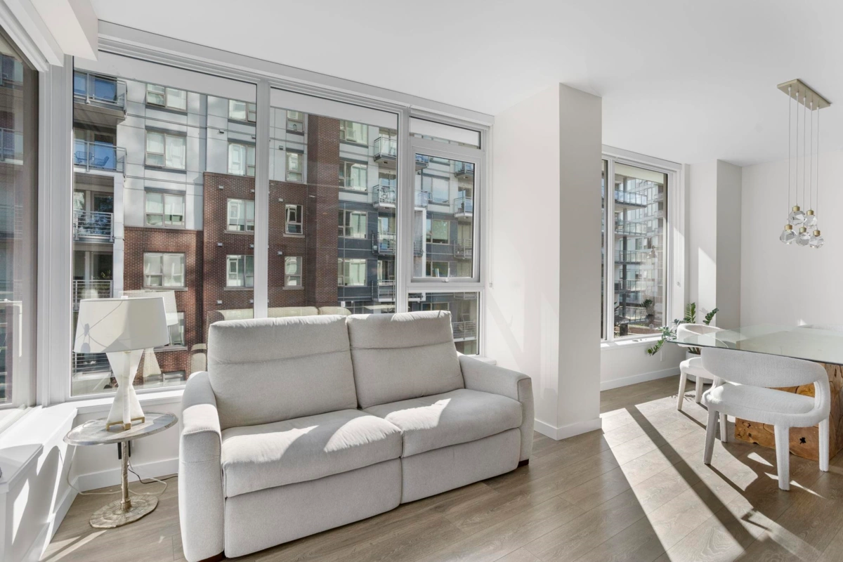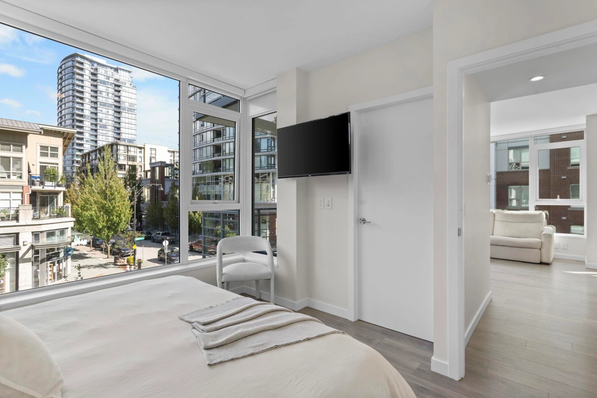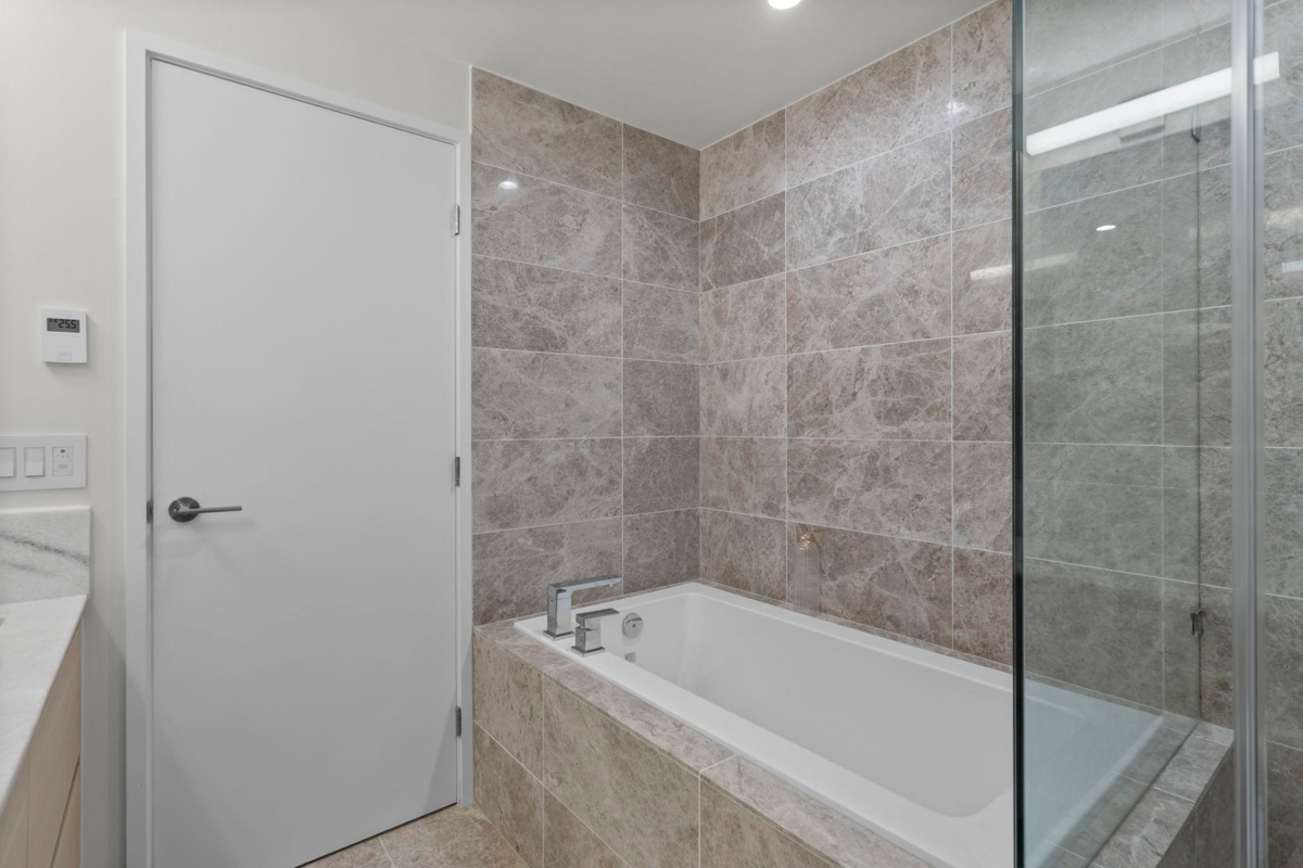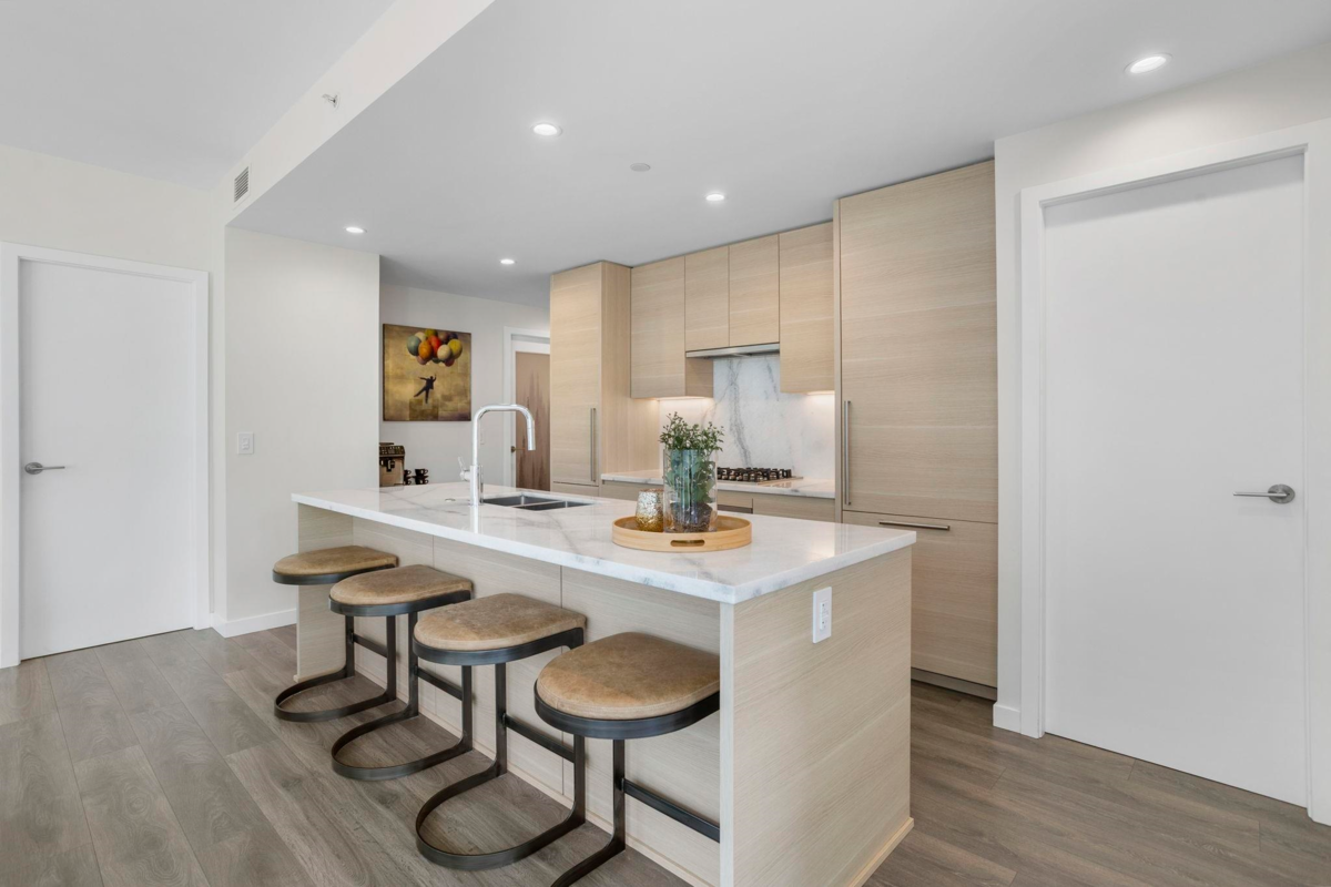 LIKE NEW | 2 BED + LARGE DEN | 2 PARKING | LARGE STORAGE! Perfect for downsizers or anyone seeking resort luxury! This concrete home lets you skip the elevator-just head downstairs to Suter Brook Village for groceries, dining & more or a short walk to Rocky Point, SkyTrain & Newport Village. Inside, enjoy high-end finishings: A/C, an entertainer’s dream kitchen & spa-inspired bathrooms. With 2 spacious bedrooms + a den that functions as a 3rd bdrm, this layout is versatile for all stages in one of Port Moody's most sought-after buildings! 'THE GRANDE' offers resort-style amenities including concierge, pool, hot tub, sauna/steam room, guest suites, gyms, golf simulator, lounges, meeting rms & more. Comes with 2 parking (1 EV) & a HUGE locker just steps from the elevator OPEN SUN JAN 18, 1-3