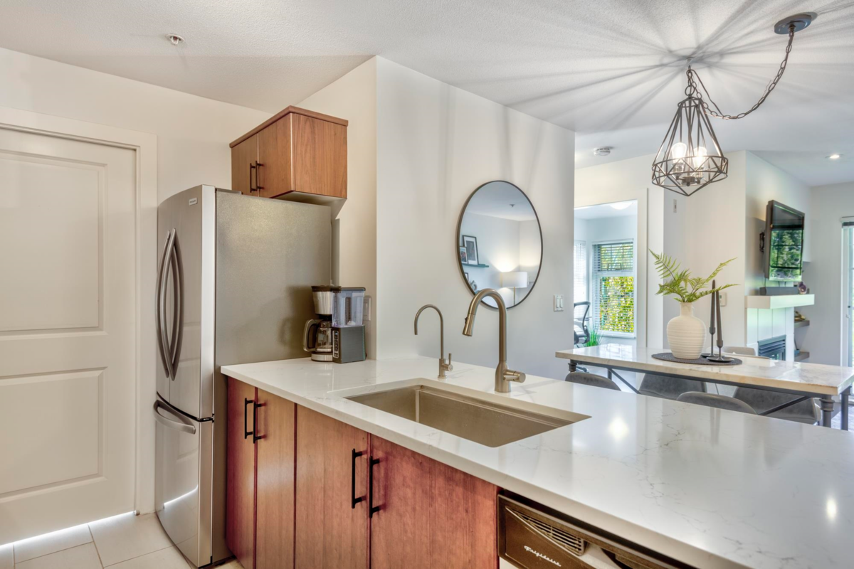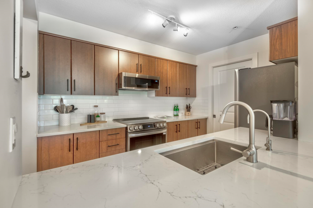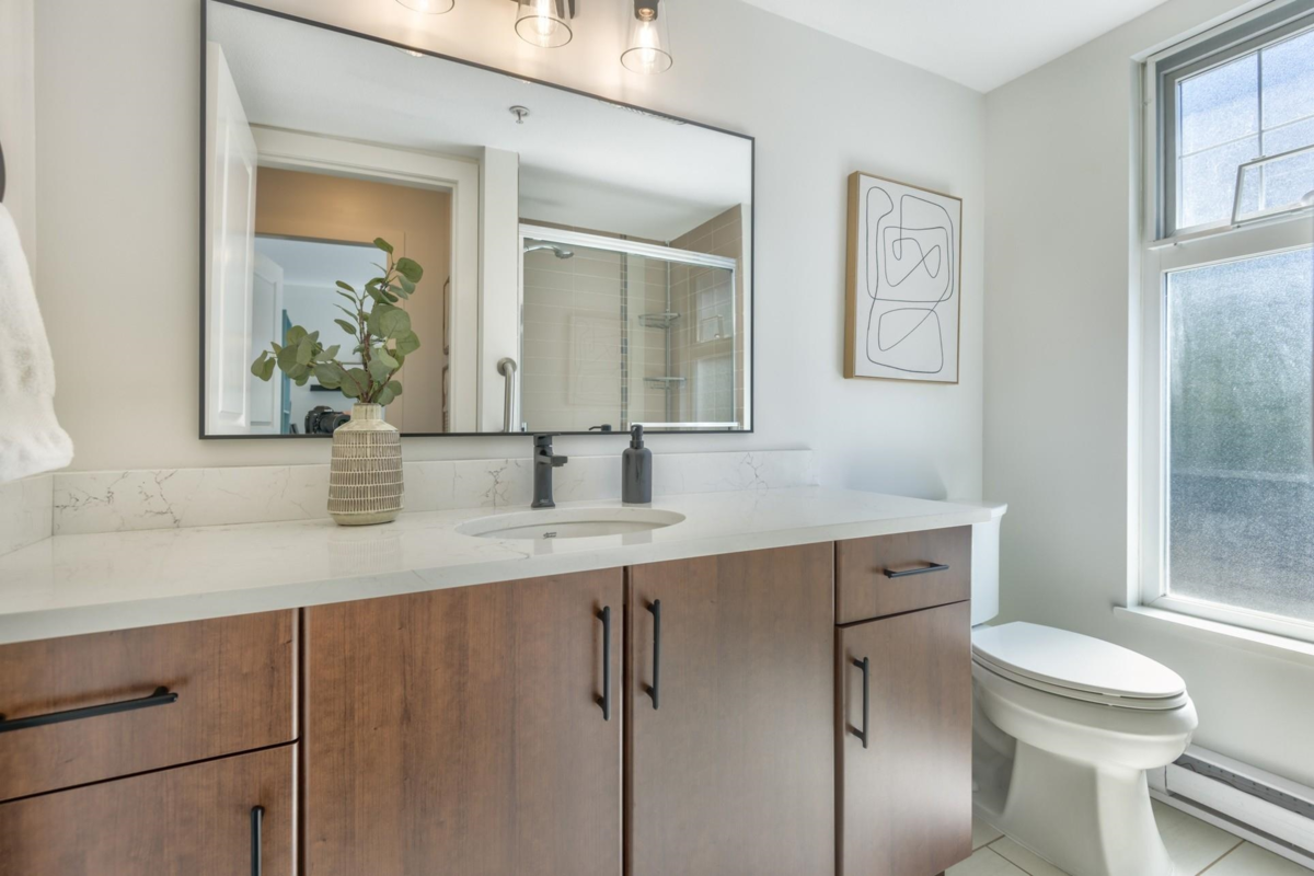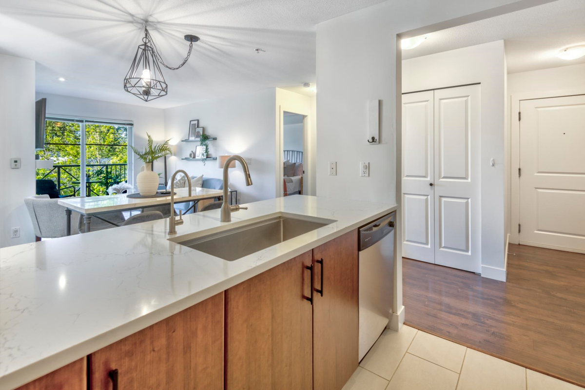 Stylish, spacious & steps from everything! This bright 2 bedroom, 2 bathroom corner unit shines with recent renos to the kitchen & bathrooms. New quartz counters, backsplash, sinks, lighting, paint & hardware. Sleek new appliances (stove/micro 2024, fridge/W&D 2025). Bedrooms are thoughtfully placed on opposite sides for privacy. Screened windows/balcony door for comfort. Brand new balcony membrane with pro-active Strata. Leave the car in one of your 2 side-by-side parking stalls. SkyTrain is just a 3-minute walk & the West Coast Express gets you to DT Vancouver only in 25 min. Stroll to Rocky Point Park, Shoreline Trail, Brewer’s Row, shops & dining. Amenities include a gym, event space & playground. Urban convenience meets Port Moody’s vibrant outdoor lifestyle! Open House Sat 2-4 pm