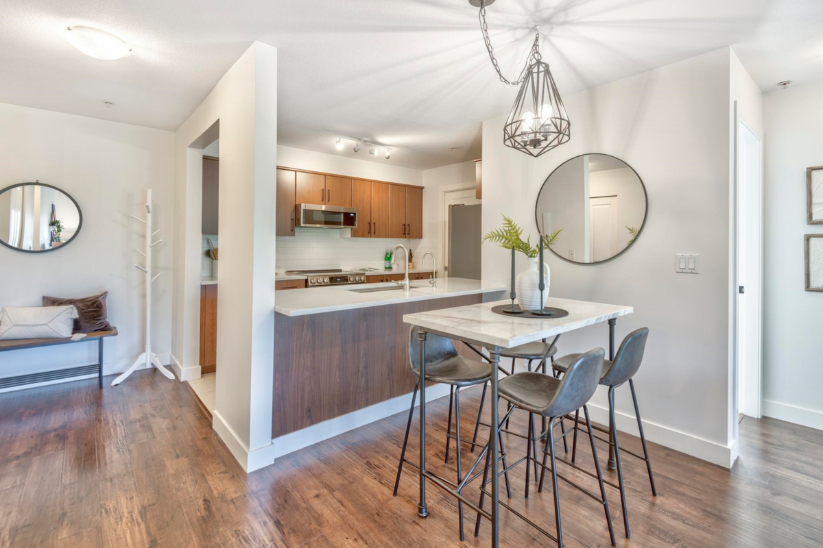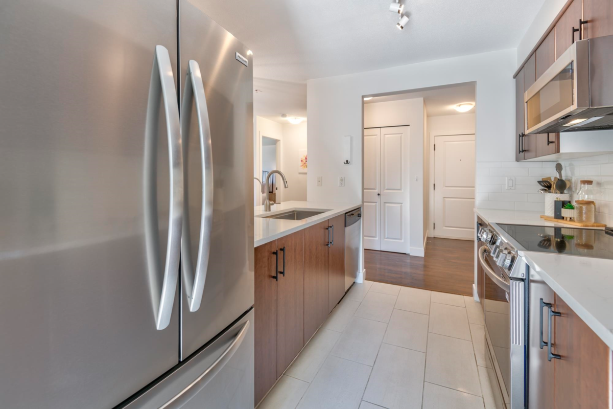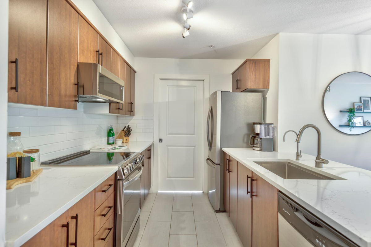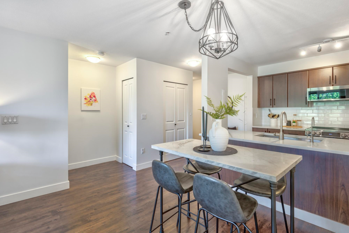 Stylish, spacious & steps from everything! This bright 2 bedroom, 2 bathroom corner unit shines with recent renos to the kitchen & bathrooms. New quartz counters, backsplash, sinks, lighting, paint & hardware. Sleek new appliances (stove/micro 2024, fridge/W&D 2025). Bedrooms are thoughtfully placed on opposite sides for privacy. Screened windows/balcony door for comfort. Brand new balcony membrane with pro-active Strata. Leave the car in one of your 2 side-by-side parking stalls. SkyTrain is just a 3-minute walk & the West Coast Express gets you to DT Vancouver only in 25 min. Stroll to Rocky Point Park, Shoreline Trail, Brewer’s Row, shops & dining. Amenities include a gym, event space & playground. Urban convenience meets Port Moody’s vibrant outdoor lifestyle! Open House Sat 2-4 pm