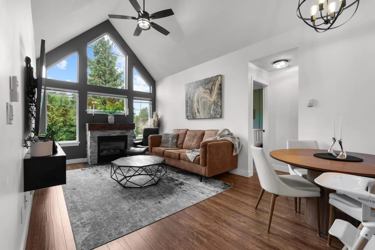 Modern living meets small-town charm at Caroline Villa, Mission’s most sought-after condo building! This fully renovated 2 bed, 2 bath home offers 892 sq. ft. of bright, open living with 14-ft vaulted ceilings, modern finishes, and a quiet southwest-facing patio overlooking the church. Enjoy peace away from road noise, plus 2 underground parking stalls, in-suite laundry, and pet-friendly living for dogs up to 95 lbs. Perfect for young professionals seeking comfort, style, and convenience in Mission’s best location. OPEN HOUSE NOV 1ST, 1-3PM.