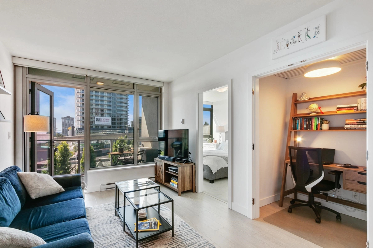 The Union, 518 Whiting Way in popular West Coquitlam is a stylish residence in a convenient & safe location. The functional open plan offers 8'5 ceilings. DEN/WFH office, contemporary kitchen design with soft close cabinetry, quartz counters, SS appl & Gas cooktop & a large WI closet in bedroom. Residents at 518 Whiting enjoy fabulous amenities, incl. a well-appointed gym and an impressive events room showcasing floor to ceiling windows, chef's kitchen, lounge area & a large outdoor space. Walking distance to shops & transit and direct access to major driving routes or an easy commute to any destination. Live in or rent out; this is an ideal investment opportunity with suites like this renting for $2500+! One secure parking & pets & rentals ok. OPEN HOUSE: Sunday, August 27th from 2-4