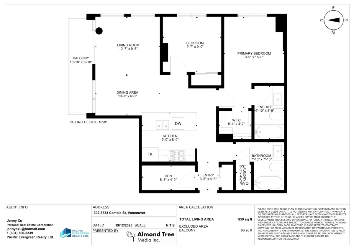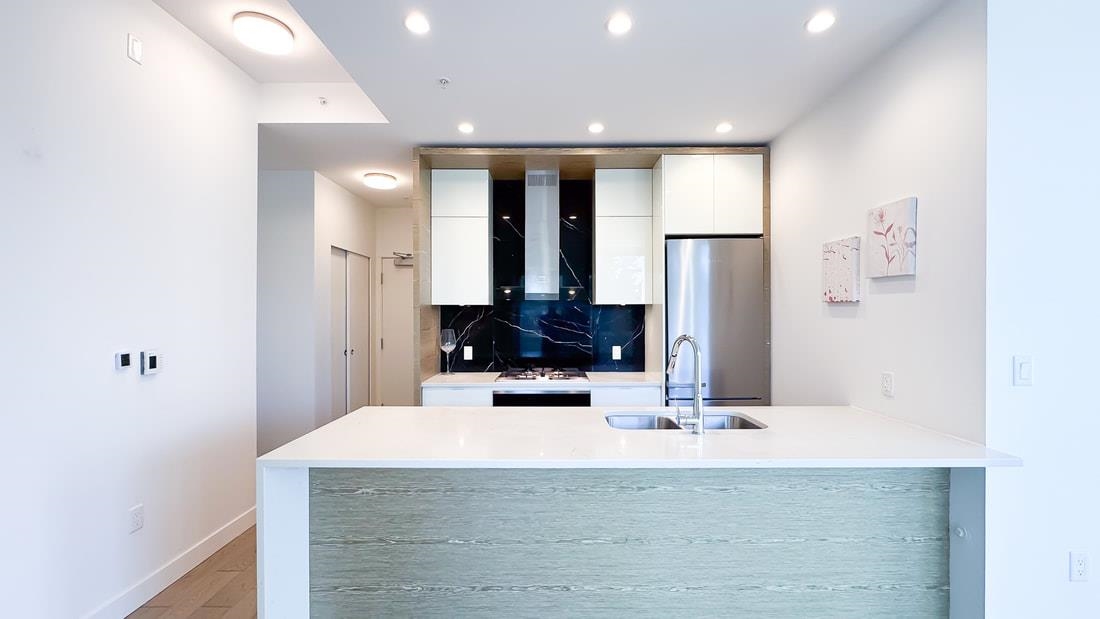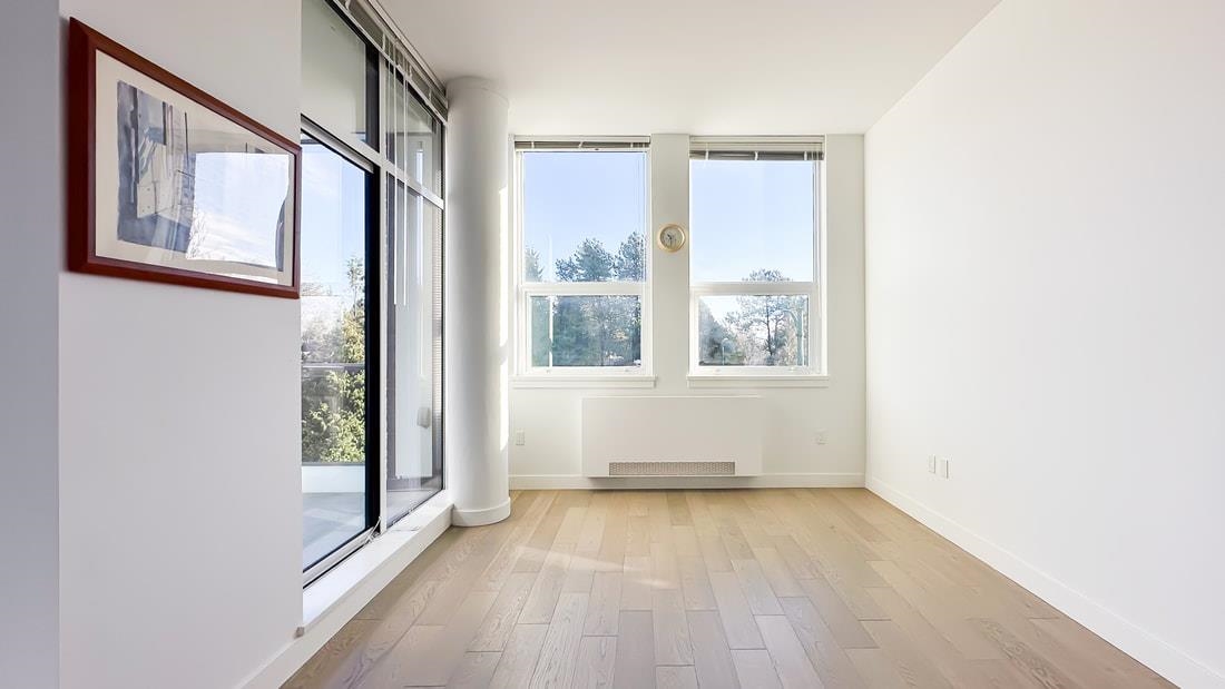 Welcome to Camellia, a boutique concrete building. This bright, east-facing contemporary 2-bed + den, 2-bath corner unit features 10-foot ceilings, air conditioning, and a spacious balcony. The kitchen is equipped with Miele appliances, while engineered hardwood flooring runs throughout. Additional highlights include geothermal heating and cooling, LEED Gold certification, and marble bathroom countertops. The home includes one underground parking stall conveniently located next to the elevator and one storage locker. Enjoy a central location close to everything the Westside and Cambie Corridor lifestyle have to offer-Oakridge Centre, Supermarket, cinemas and restaurants. Walking distance to Langara-49th Ave SkyTrain Station and within the Sir Winston Churchill Secondary School catchment.