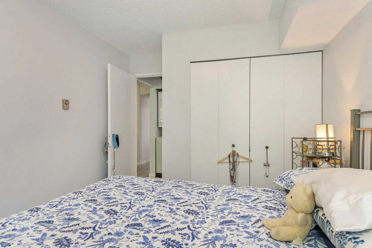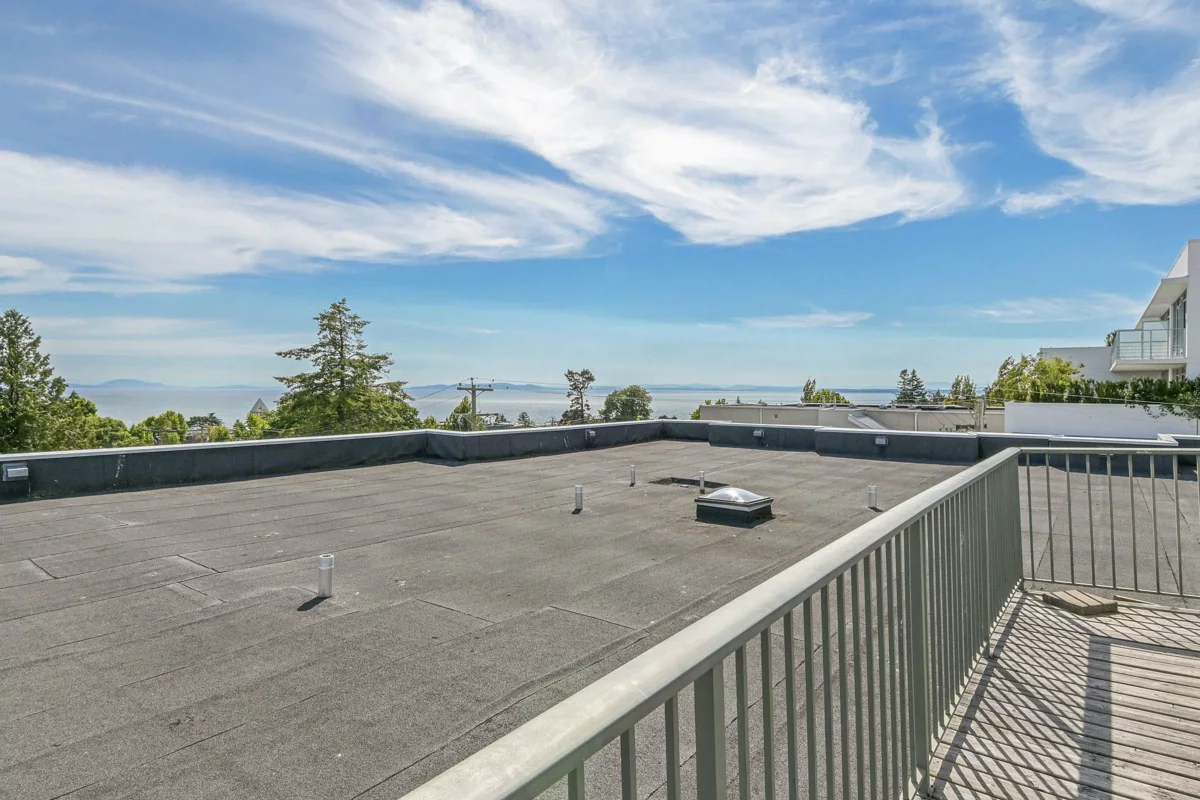 Welcome to this bright & airy top-floor 1-bedroom + den featuring updated flooring throughout. You'll love the quiet location, natural light & versatile den—complete w/ two closets & a skylight—ideal for home office, gym, or creative space. The open living area is enhanced by an electric fireplace & opens onto a spacious deck w/ access from both the living room & bedroom—perfect for morning coffee or evening relaxation.The kitchen includes a generous walk-in pantry & there is ample storage overall. Step outside & you’re just a quick walk from everything: shopping, restaurants, library, theatre & more. Exceptional walk score, this location can't be beat. Check out the incredible rooftop deck w/ panoramic ocean views—a perfect bonus!