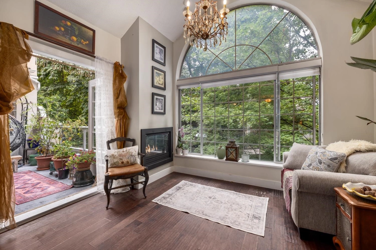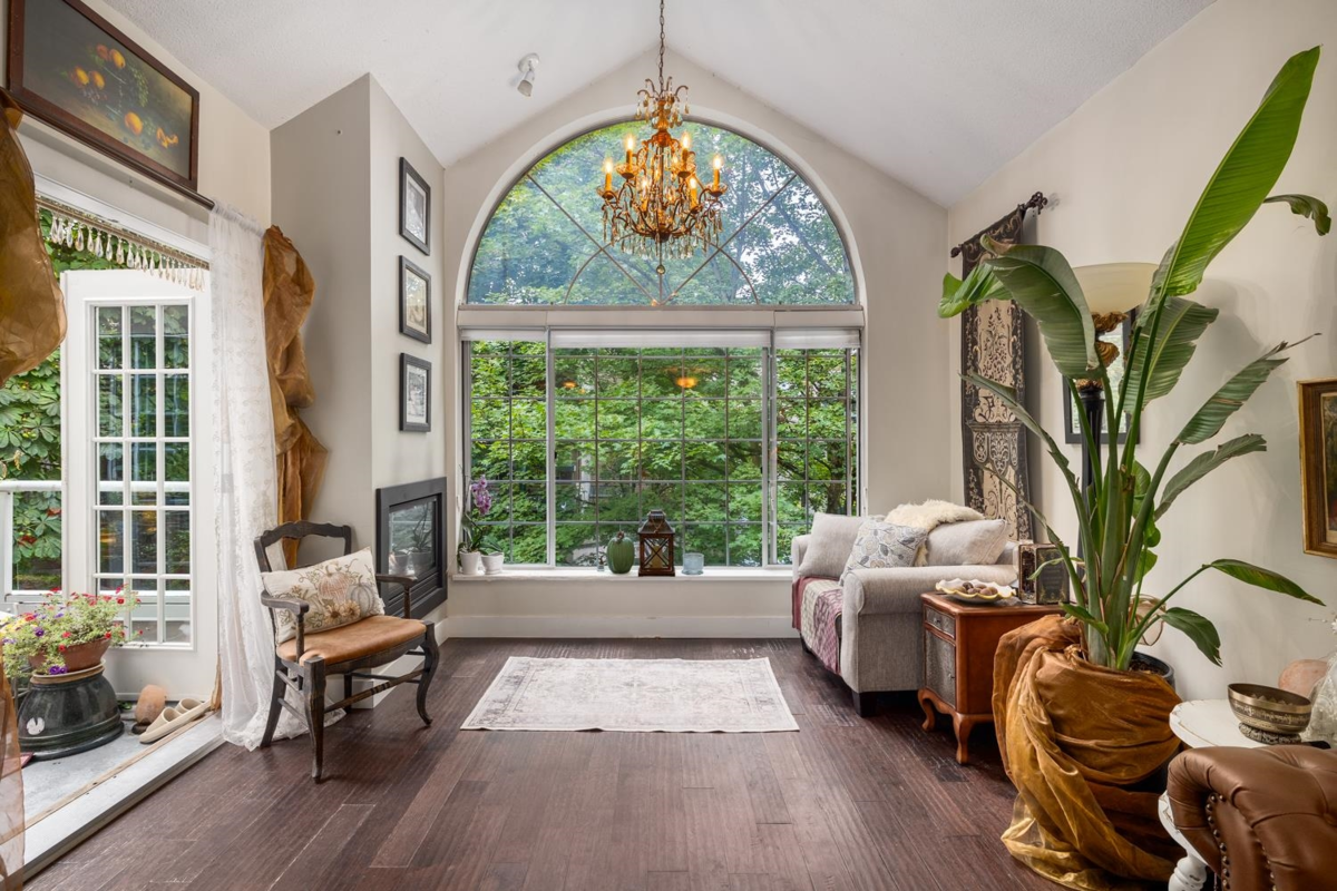EXCEPTIONAL unit in the gorgeous West End. This 1 Bed, 1 Bath boutique unit offers everything. Stunning floor to vaulted ceiling window allows an abundance of natural light into the entire space. Watch all the seasons pass from the comfort of your renovated home. Upgraded E/W floors, Renovated bathroom, kitchen, backsplash, SS appliances inc Induction stove, gas f/p and paint. Sitting at 720 SqFt, Enjoy an open plan layout inc sundrenched balcony. Large rooms that allow full sized furniture and comfortable living, IN SUITE LAUNDRY room, parking, bike room & storage. Perfect balance of access/privacy in one of Vancouvers most desired areas is not to be missed. Building in excellent condition - fully RAINSCREENED, renovated lobby, and a fantastic private Zen garden. Showings by appt only.