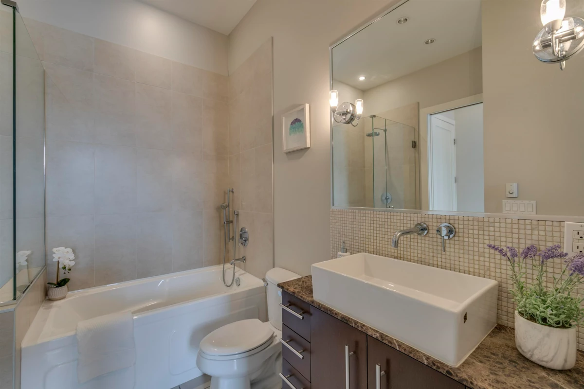 Elegant Top Floor Penthouse w/ soaring 11.5-ft ceiling.Super Rare JUMBO 1BD + Den + Flex in the heart of Arbutus Walk in Kitsilano-1 of Vancouver’s most WALKABLE neighbourhood.Walk Score 94. 6-minute WALK to future ARBUTUS SKYTRAIN STATION.Arbutus Greenway (8.5k) just across the street.Den (built enclosed)--easily reversed & can be SECOND BEDROOM.BRAND NEW Light Oak Engineered Hardwood Floor & HW Tank.Modern European Exterior Design.Gourmet Kitchen w/Caesarstone Quartz Slab Counter/Custom European Cabinetry/SS LG Appliances/Gas Range.Spa Bath w/ rich Marble Counter/Wall Hung Italian Cabinets/Frameless Shower Glass Enclosure/Rainhead Shower/Deep Soaker Tub.Min to City Market/Starbucks/Safeway/Kits Comm Ctr/Connaught Park/Kits Beach/Broadway & 4th shops.Go https://rem.ax/3WNU7cG for 3D Tour.