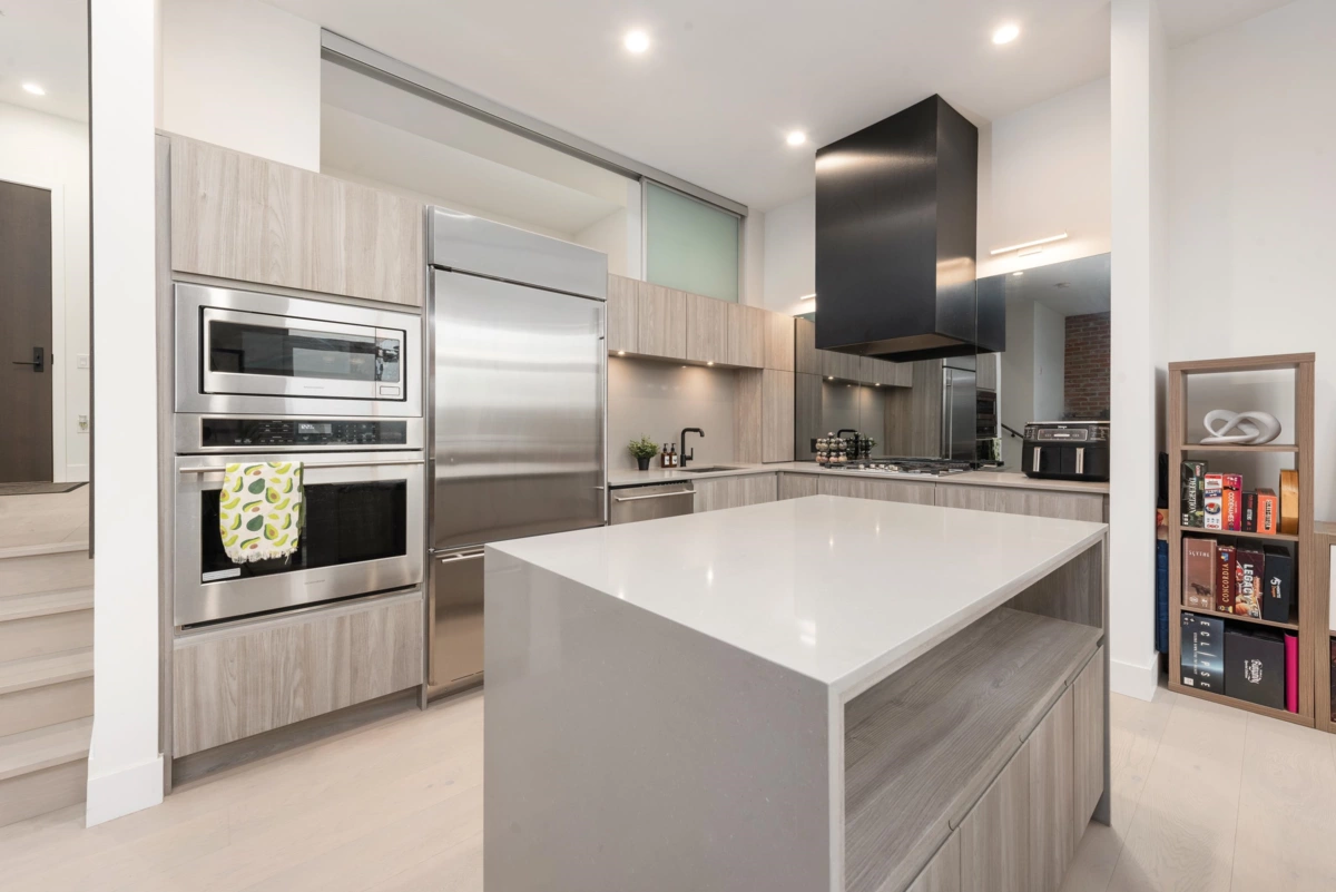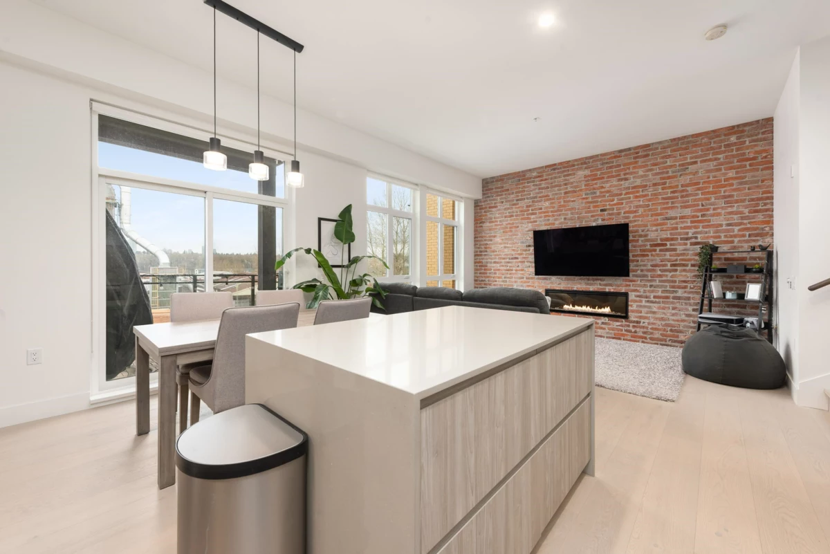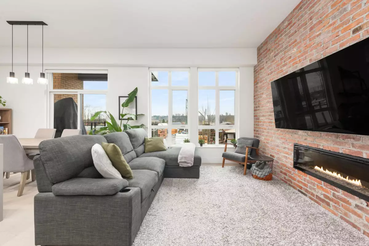 Loft-style 1 bed, 1 bath condo at #303–300 Salter Street in New Westminster. This stylish home features an exposed brick feature wall, open-concept layout, and premium Monogram appliances with a gas range. Northwest-facing city and mountain views offer stunning sunsets and natural light. Step outside to the Riverwalk at your door and enjoy convenient access to the ferry connecting to New West Quay. Ideal for professionals seeking a unique urban lifestyle close to transit, shops, dining, and the waterfront.