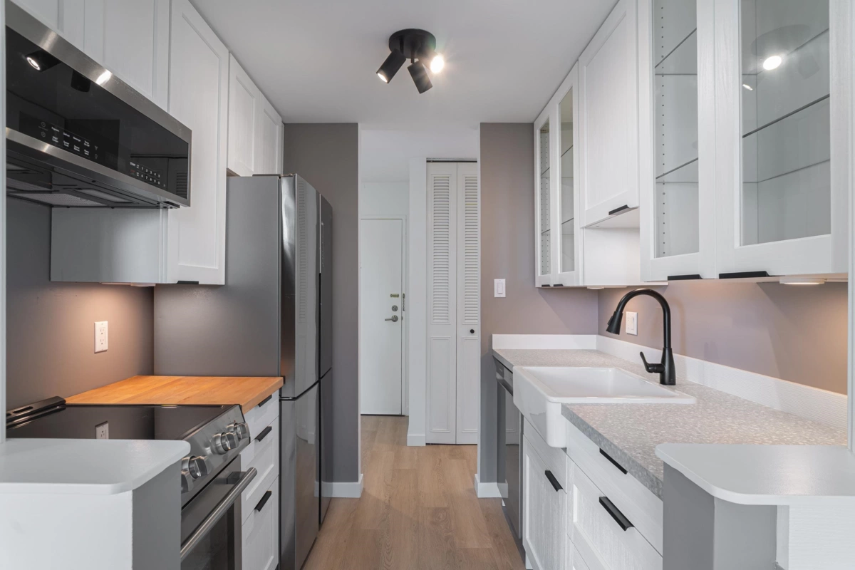 Bright, Renovated Condo in the Heart of Lower Lonsdale. Live rather than exist!! Affordable, Low-maintenance living in North Vancouver’s most vibrant neighbourhood - famous Shipyards! Resort-style amenities: pool, sauna, jacuzzi! What's not to love? This makes moving easy. Fully renovated with brand new appliances - move-in ready, like new and waiting for your personal touch. Perfect for singles or couples, featuring a sun-drenched south- and west-facing balcony with amazing views—ideal for gardening and year-round BBQs. Spacious layout for a king bed, large sofa, and full dining setup No Car needed. Walkable & connected: steps to Seabus, Shipyards, shops, restaurants, trails. Includes secure underground parking & storage. Great community! OH Sun Sept 4, 1-3