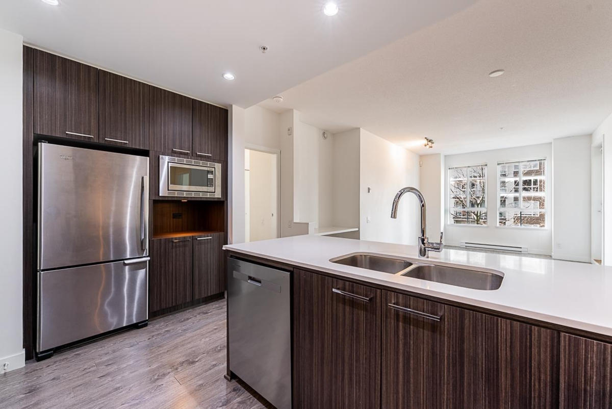 FOSTER WEST by MOSAIC: Conveniently located in the sought after Coquitlam West, ever growing and desirable Burquitlam area. This two-bedroom, two full bathroom unit features QUARTZ countertops, STAINLESS STEEL appliances with a built-in microwave, laminate floors in the living areas, a built-in WORKSTATION off the dining area, under cabinet lighting, HIGH CEILINGS (9 ft), separated bedrooms, and ample closet space in the primary bedroom. A storage locker and secured parking stall is included, a fitness gym is located within the complex along with well-manicured grounds. Walking distance to the City of Lougheed and Burquitlam Station. Plenty of shopping, restaurants, coffee shops nearby, and right next to Cottonwood Park.