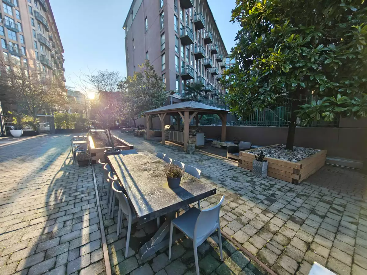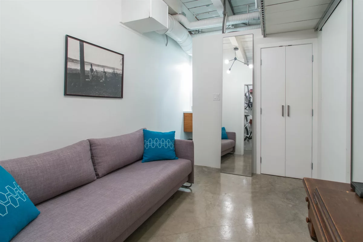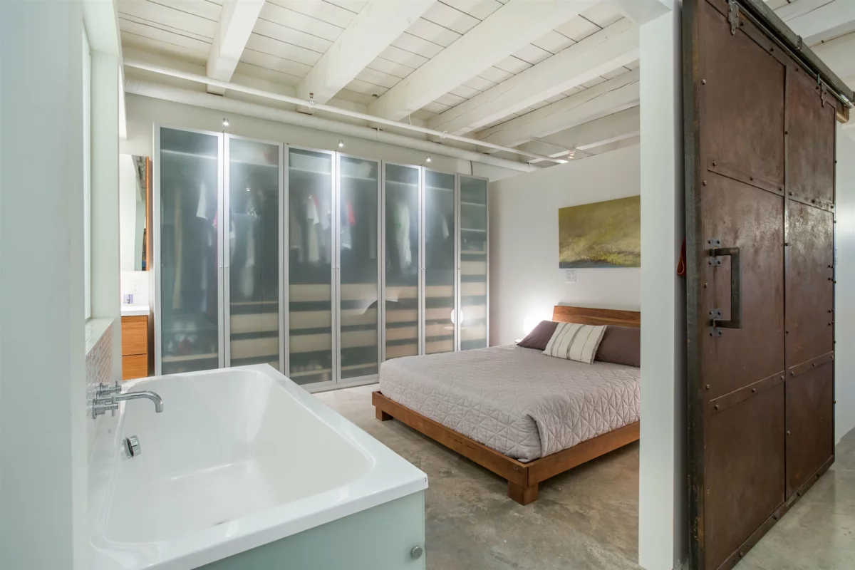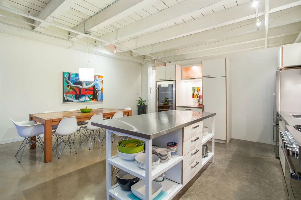 Expansive NYC style loft in Gastown's coveted Koret Lofts. This hip open concept space boasts gleaming concrete floors, large entertainment size living room w adjacent dining and kitchen, plus a flex area perfect for office, all adorned w exposed brick + old growth beams & mountain views! The pro chef’s kitchen is perfectly appointed w modern wht cabinetry, ss appliances (new washer/dryer), lrg gas range, wine fridge, stainless island. The master bedroom is hidden behind a beautiful custom built barn door, complete with lots of storage and large beautifully renovated spa-inspired ensuite bath w exposed bathtub + subway tiled shower. The building provides a great updated outdoor patio/seating/BBQ area for the owners' enjoyment. 2 pets ok. 1 u/g parking.