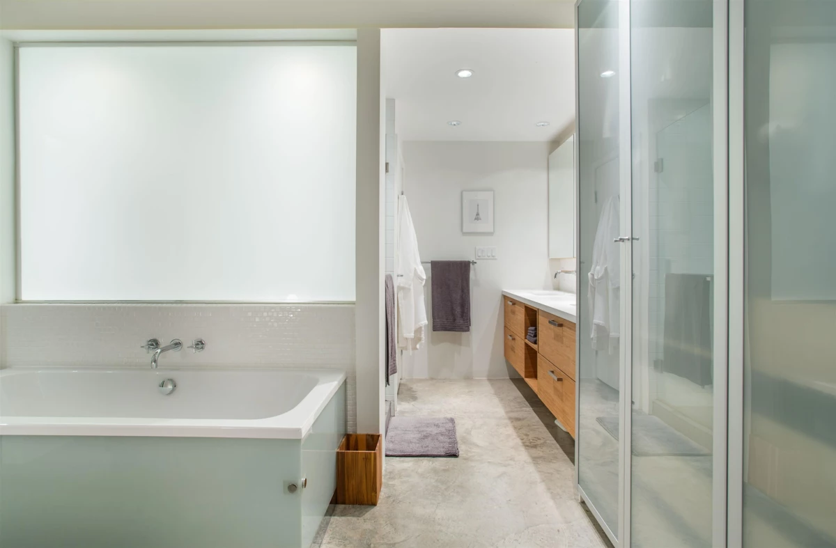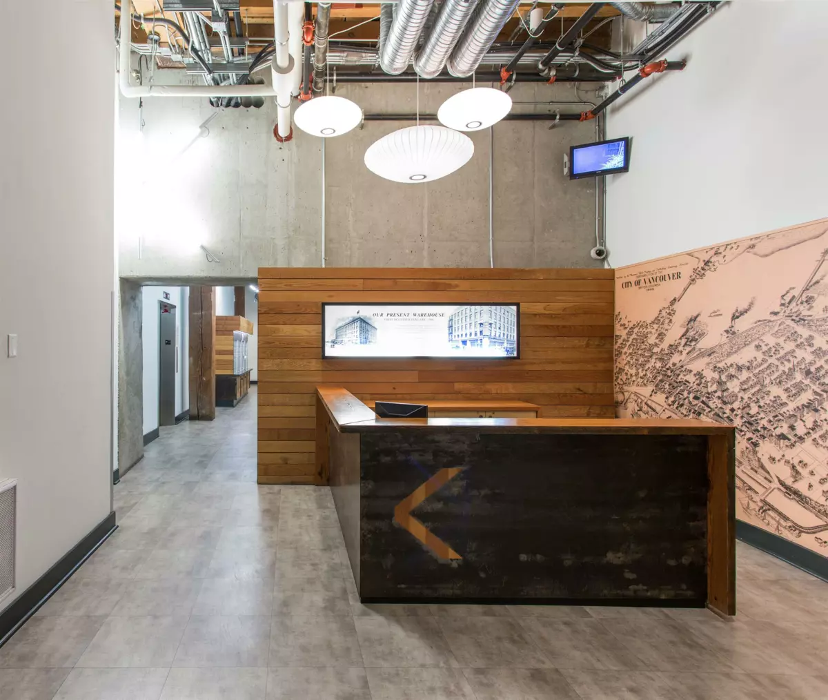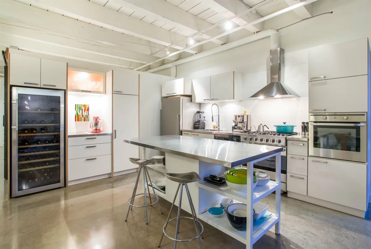 Expansive NYC style loft in Gastown's coveted Koret Lofts. This hip open concept space boasts gleaming concrete floors, large entertainment size living room w adjacent dining and kitchen, plus a flex area perfect for office, all adorned w exposed brick + old growth beams & mountain views! The pro chef’s kitchen is perfectly appointed w modern wht cabinetry, ss appliances (new washer/dryer), lrg gas range, wine fridge, stainless island. The master bedroom is hidden behind a beautiful custom built barn door, complete with lots of storage and large beautifully renovated spa-inspired ensuite bath w exposed bathtub + subway tiled shower. The building provides a great updated outdoor patio/seating/BBQ area for the owners' enjoyment. 2 pets ok. 1 u/g parking.