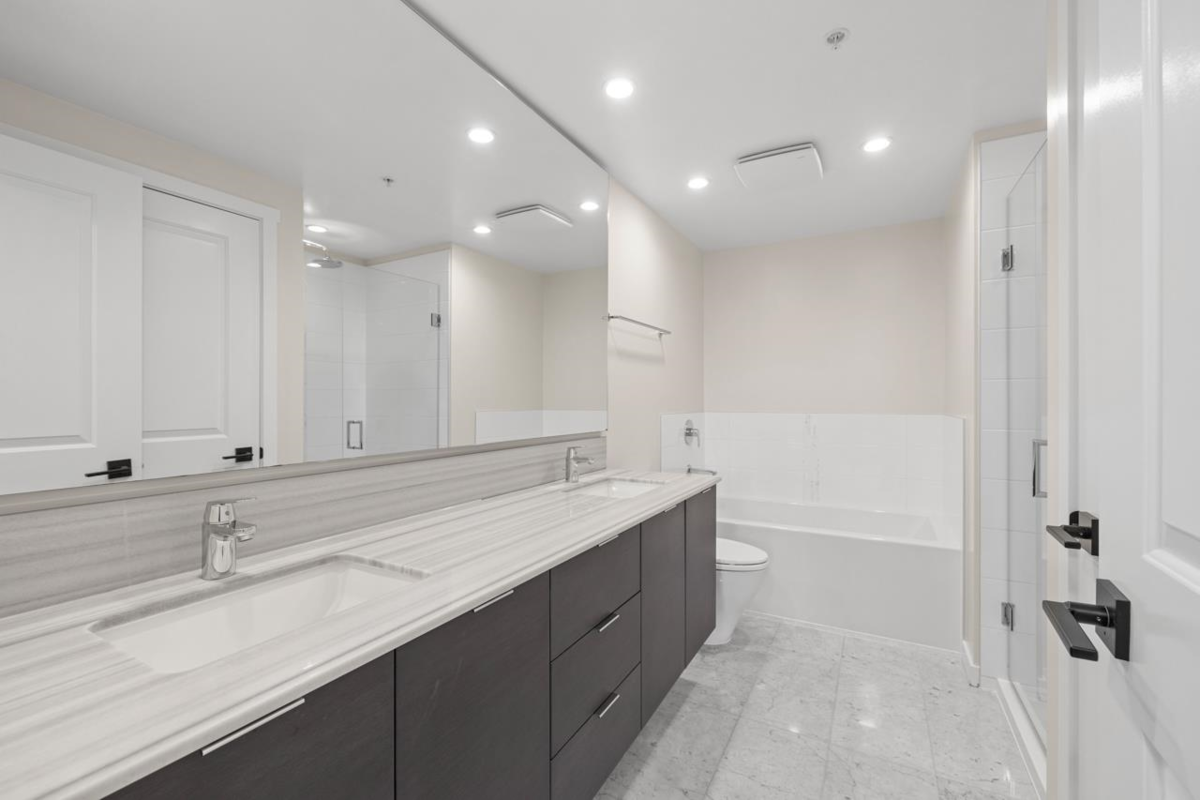 Perfect location and an exceptional layout define this beautifully maintained 2-bedroom, 2-full-bathroom condo situated right next to the newly renovated Minoru Park. Offering over 1,000 sq ft of well-designed living space, this home features a highly functional square floor plan that maximizes comfort, flow, and usability. Built in 2015, the well-managed building showcases quality construction, high end finishings, top of the line appliances and much more. The unit has been meticulously cared for by the original owner and has just been freshly painted throughout. Additional highlights include two parking stalls and a storage locker. Enjoy unmatched convenience with Minoru Park, Richmond Centre, the SkyTrain, and the brand-new community center all just minutes from your door-
