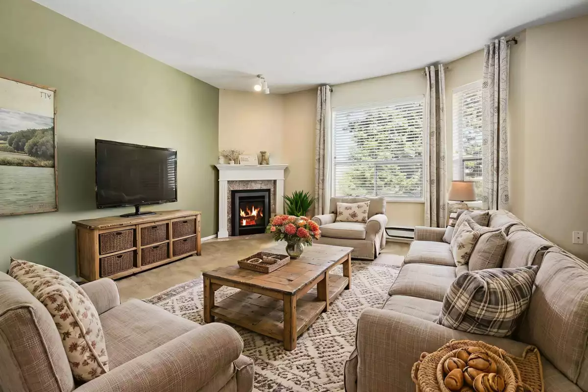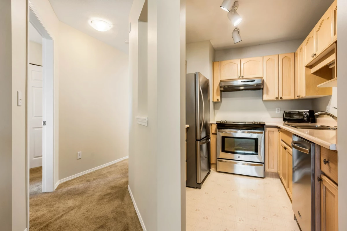 Welcome to this nicely appointed TOP-FLOOR Condo, offering the perfect blend of STYLE, COMFORT & CONVENIENCE w/ MOUNTAIN VIEWS! This SPACIOUS 1-bedroom, 1-bathroom 800+ sqft Condo has been well cared for, freshly painted & is MOVE IN READY! Light toned kitchen, with CLEAN appliances & GREAT LIGHTING! Floor-plan flows seamlessly into the generous LIVING & DINING areas, highlighted by a cozy NATURAL GAS FIREPLACE, (GAS INCLUDED!) perfect for relaxing evenings at home! Enjoy the convenience of IN-SUITE laundry, AMPLE STORAGE, & LARGE windows that flood the home with NATURAL LIGHT. Top-floor location means no neighbours above & quiet enjoyment all year round! Located in an incredibly CENTRAL LOCATION, you’re just minutes from shopping, dining, transit, & DISTRICT 1881!