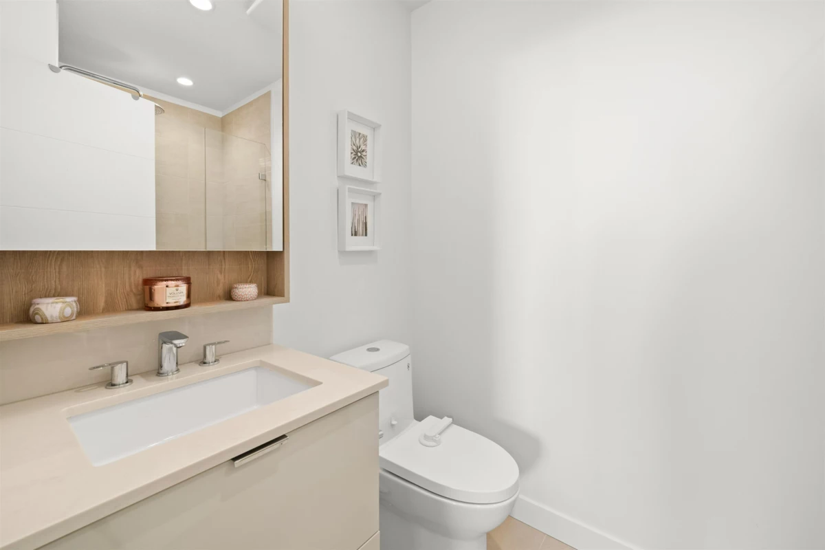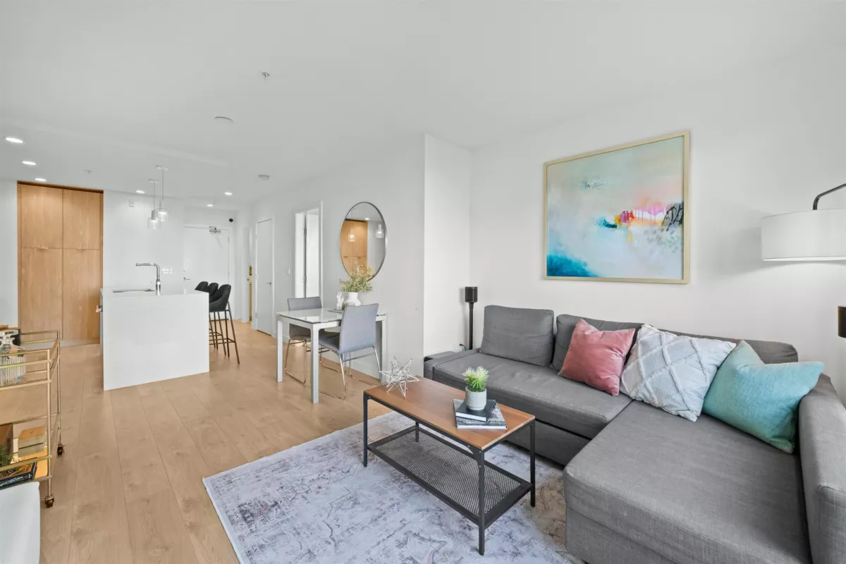 City, Ocean & Park VIEWS from every room in this perfectly laid out 2-bedroom home at CREST! You'll love the open-concept floor plan w/ high-quality finishes & a sunny south-facing patio, perfect for morning coffee or summer BBQs. Entertain w/ ease in your gourmet kitchen w/ a gas range, large island w/ waterfall-edge, pendant lighting, & built-in pantry. Thoughtfully designed for comfort & privacy, bedrooms are spacious & positioned on opposite sides of the home, complemented by spa-inspired bathrooms, in-floor radiant heating, & ample storage throughout. Experience the best of North Shore living w/ Whole Foods, Victoria Park & the Shipyards just steps away. Invest w/ confidence in this 4-year-young building w/ warranty & fantastic amenities.