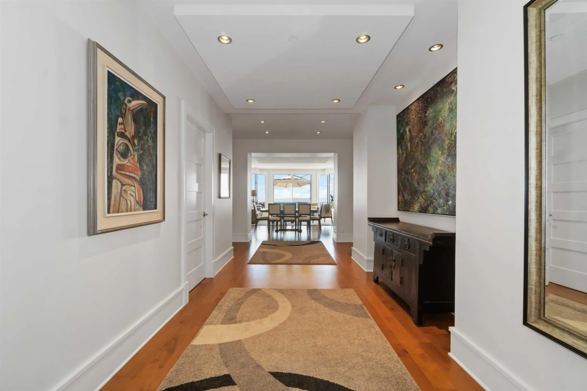 Discover refined sub-penthouse living in one of just 8 exclusive residences. This exceptional corner home offers rare one-level living, complete with private elevator & direct access to an enclosed two-car garage. Floor-to-ceiling windows frame sweeping ocean & city views from the elegant living room, while the expansive patio provides over 1,000sqft of seamless indoor-outdoor living. The gourmet kitchen is designed for both everyday living & entertaining, featuring a large island, casual eating area, & premium Miele & Sub-Zero appliances. The primary suite is a private retreat with stunning outlooks, a generous walk-in closet, & spa-inspired ensuite. A family room, office, three fireplaces, geothermal heating, A/C & exceptional outdoor space complete the space. OPEN HOUSE SAT JAN 24 1-3pm
