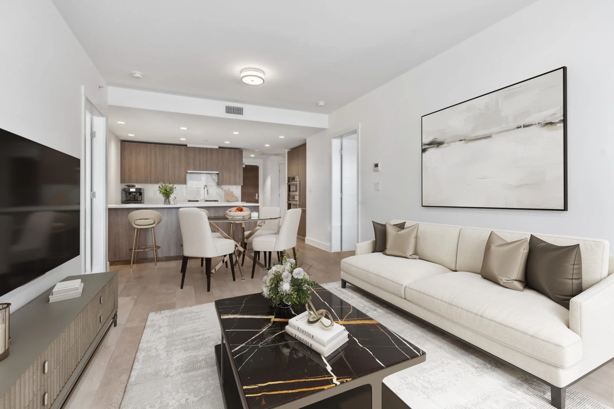 Welcome to The Residences at Lynn Valley by Bosa Development. This oversized 2 bedroom, 2 bathroom plus den home offers engineered hardwood flooring, Italian-inspired cabinetry, quartz countertops, natural gas cooking, air conditioning and full size in suite laundry. Amenities include: BBQ patio area, kids play area, social lounge, games room, screening room, gym, yoga studio, steam, sauna dog walk and dog wash. Two large patios over look the expansive podium which feature gorgeous grounds and outdoor social spaces for all to enjoy. Only steps from Lynn Valley Centre, filled with restaurants, grocers, coffee shops and fitness studios. 1 locker & 1 parking included. Photos have been virtually staged.
