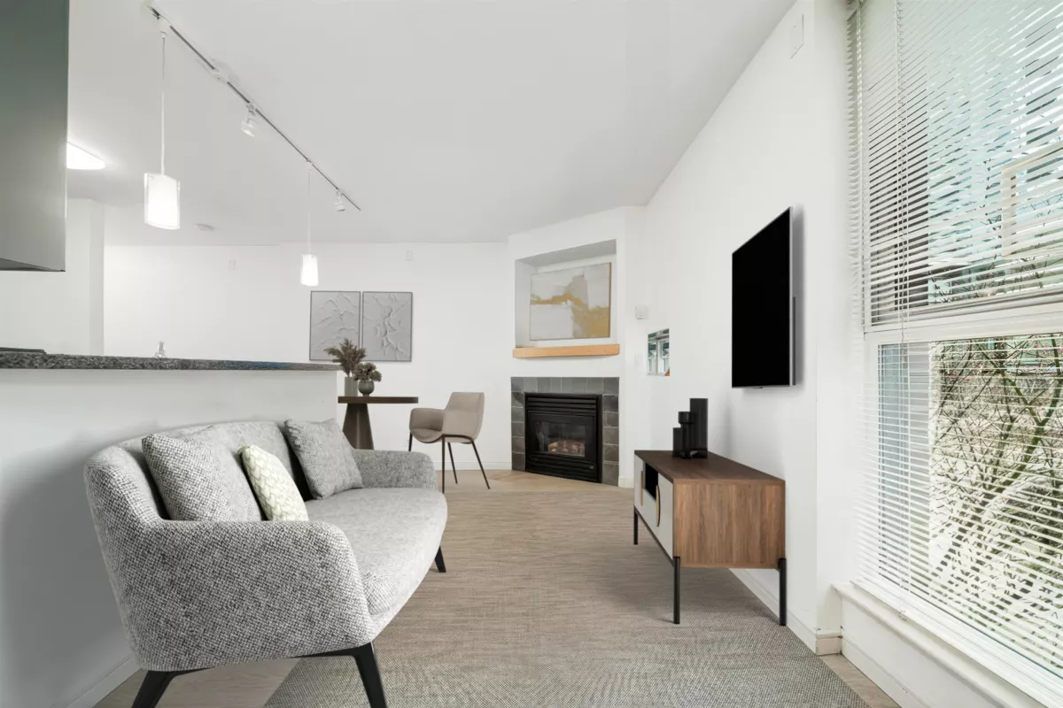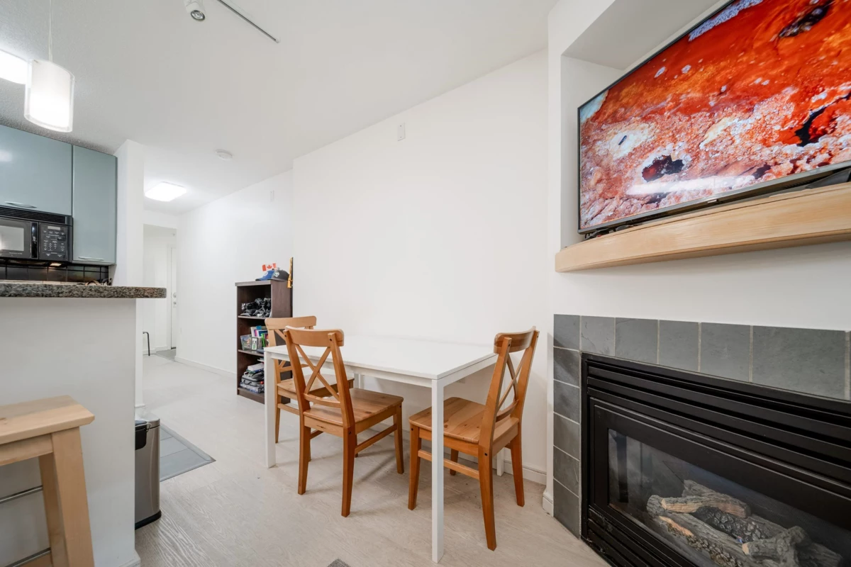 Charming, bright, airy & open studio unit with floor to ceiling windows - murphy bed, built-in, large kitchen with sit up bar, full size washer/dryer, large bathroom, flex/den area closet or office/lots of wall space for paintings or wardrobes, corner gas fireplace with nice mantle. Perfectly suitable to live in, rent out or use as a pied-a-terre! Comes with a large storage locker & parking stall. Building has meeting room & games room, party room & big screen TV room/spa/gym at Wall Centre Hotel across the street - accessible by owners or renters for small monthly fee - no contract. Great building , great management, great caretaker, great location - 100 Walk Score! Walk to Robson, Yaletown, Canada Line Skytrain, restaurants, theatres, groceries.