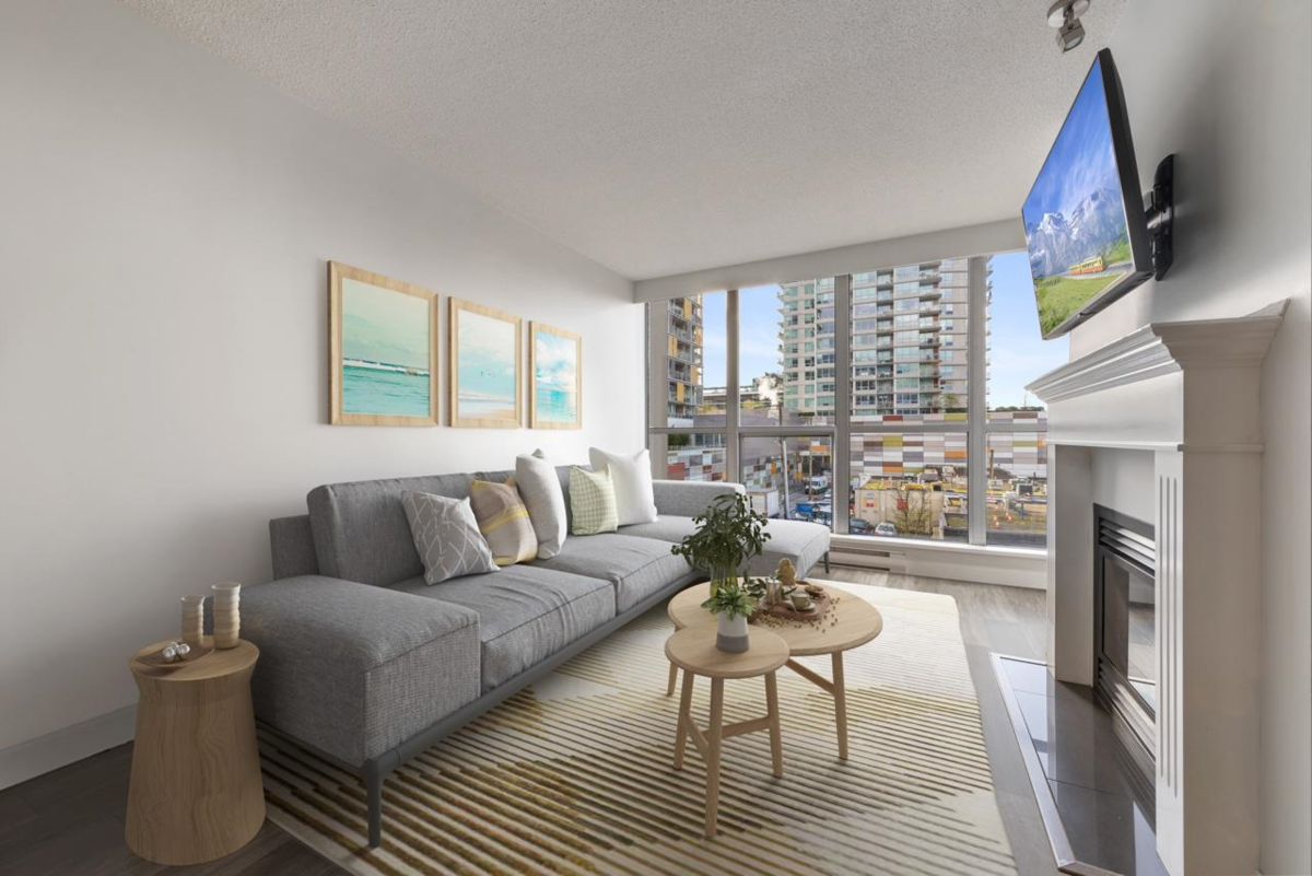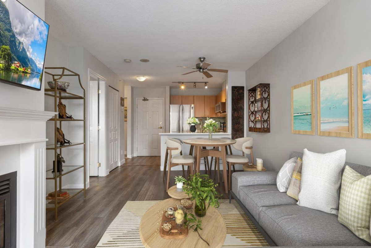 Charming one-bedroom home in The Piermont, a sought-after boutique concrete building in the heart of Central Lonsdale. South-facing with floor-to-ceiling windows, designer blinds, a spacious balcony, and a gas fireplace that efficiently heats the unit. Features include luxury vinyl plank flooring, stainless steel appliances, a sleek new microwave, and in-suite laundry. Smart, open layout with no wasted space and in great condition. Comes with one parking stall and one storage locker. Pet-friendly (dog or cat) and rentals allowed. Proactive strata in an unbeatable location, steps to Lions Gate Hospital, Civic Plaza, Library, shops, restaurants, and transit. A must-see and easy to show. Welcome home.