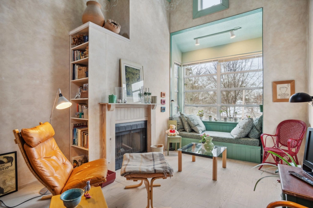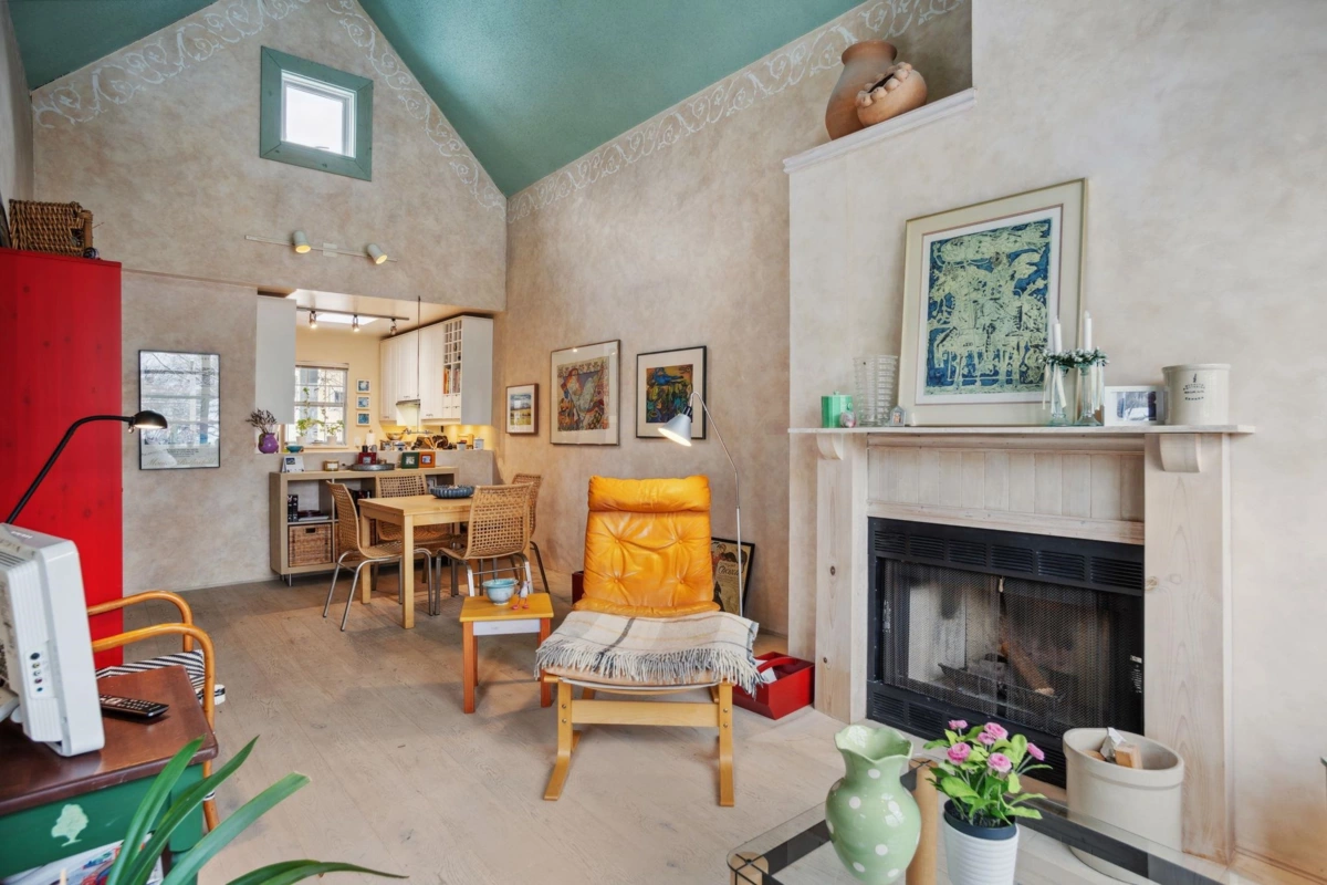 TOP FLOOR WEST END CONDO AT IT'S BEST! SW facing private treed outlook & Barclay Heritage Park across the street. Perfectly executed 1 bed floorplan designed for the contemporary professional. 16' vaulted ceiling, skylights & clerestory windows for added brightness, updated kitchen w/ window, renovated bathroom w/ heated floors, gorgeous top quality light hardwood plank floors, wood burning fireplace, built-in living room window seat & shelving, in-suite laundry, ample storage, townhouse style entry w/ open walkways, pet friendly(1 dog/cat or 2 cats), storage locker & parking & rainscreened exterior. Ideal quiet central location close to shopping, restaurants, recreation, Stanley Park & transportation. Units rarely become available in this boutique building. Act now before its too late!