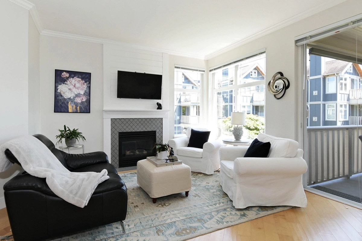 Beautiful home in sought after Ocean Bay Villas. Drenched in sunlight, this unit features an open floor plan, 9' ceilings and wood flooring throughout. The updated kitchen offers white cabinetry, quartz counters and newer appliances. Living room with custom designed fireplace surround & ship lapping, with sliding glass door to spacious covered patio, great for summer entertaining & includes handy storage unit too. Murphy bed in 2nd bedroom. Built with hardy plank siding, this complex offers peace of mind for buyers. Extensive amenities include a fully equipped gym, games room, workshop and guest suite for your out of town visitors. This pet friendly community is located just steps from shopping, dining & transit, uptown White Rock and the Semiahmoo Mall. Nothing to do but move in!