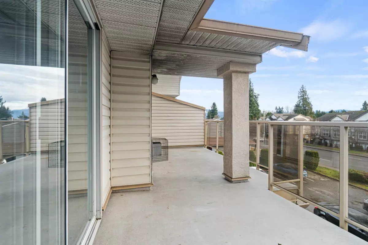 Top-floor corner condo in the unique CityScape building. This 2-bedroom, 2-bath home offers approximately 950 sq. ft. of bright, well-laid-out living space with vaulted ceilings and large windows showcasing mountain views. Enjoy a huge deck ideal for relaxing or entertaining, plus the convenience of in-suite laundry, a storage locker and two parking stalls. Quiet, well-maintained complex with only 13 units but enough space for your furry friends! Centrally located with easy highway access and just minutes to UFV, the hospital, shopping, and the cafés and shops of Downtown Abbotsford. An excellent opportunity for first-time buyers, investors, or empty nesters seeking a low-maintenance lifestyle in a prime location.