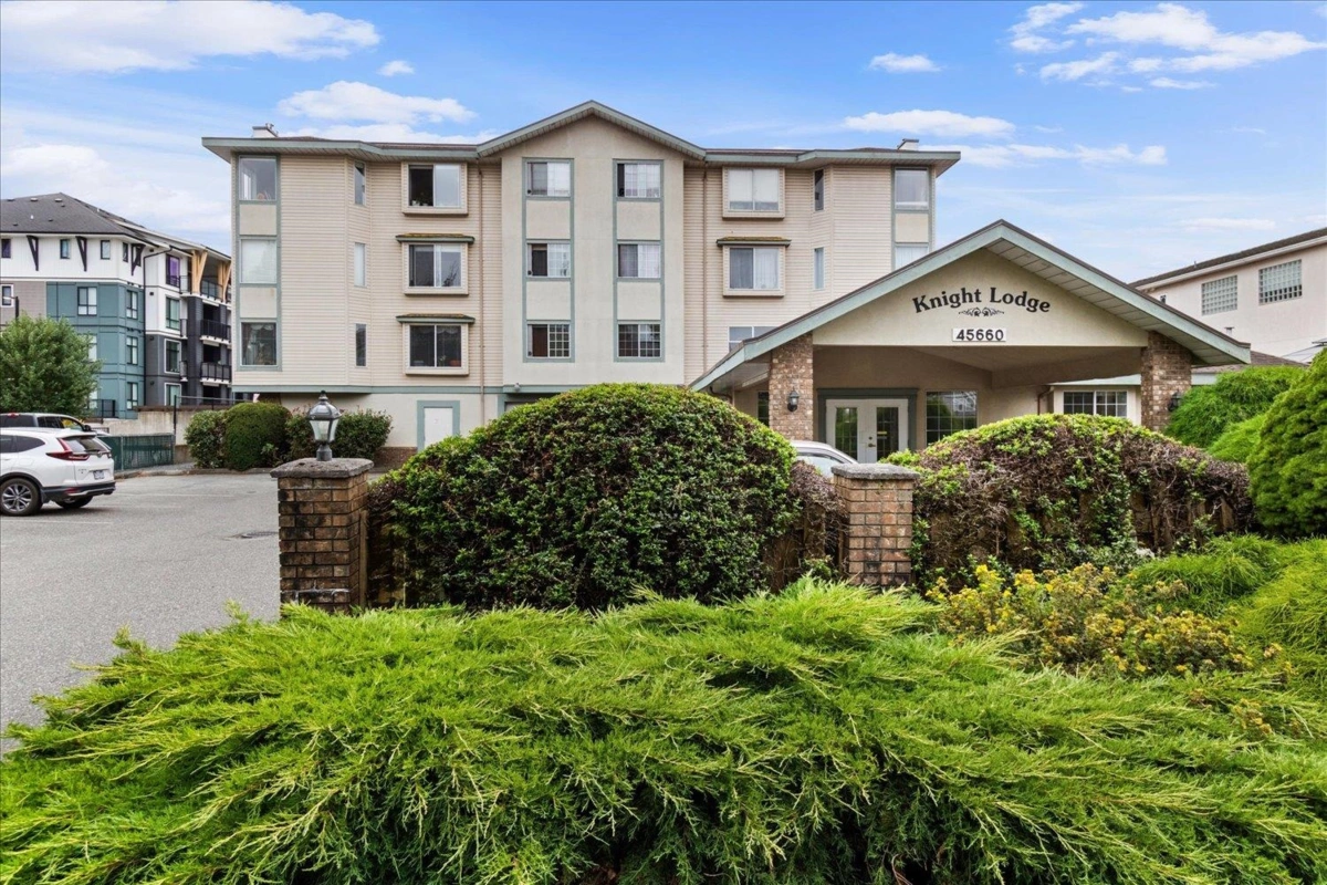 Welcome to Knight Lodge! This bright, 1,225 sq ft condo offers 2 bedrooms plus a sunroom/den, perfect for a home office or extra living space. Located in the heart of Sardis, it features nearly new appliances and windows, flooding the home with natural light. Enjoy secure parking, a storage locker, and close proximity to transit. This adult-oriented building includes great amenities like a guest suite and games room. Walk to groceries, shopping, and coffee shops-everything you need is just steps away. A spacious, move-in ready home in a prime location you won't want to miss!