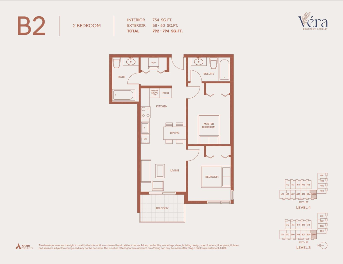 Vera Langley Downtown! B2 floorplan 2 Bed + 2 Bath— modern, functional, and affordable living just an 8-min walk to the future 2028 SkyTrain. Includes 1 EV-ready parking and 1 locker. Enjoy 9' ceilings, wall-mounted A/C, an open layout, and a contemporary kitchen with Fulgor appliances, quartz counters, and soft-close cabinetry. Prime Downtown Langley close to shops, parks, and transit. Completion: Dec 2025. Act now to secure a top-quality home! Showroom open Tues/Thurs/Sat 1–5pm at 101-5398 207 Street.