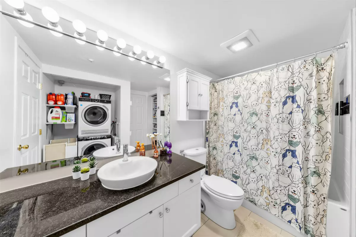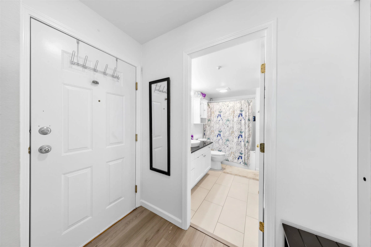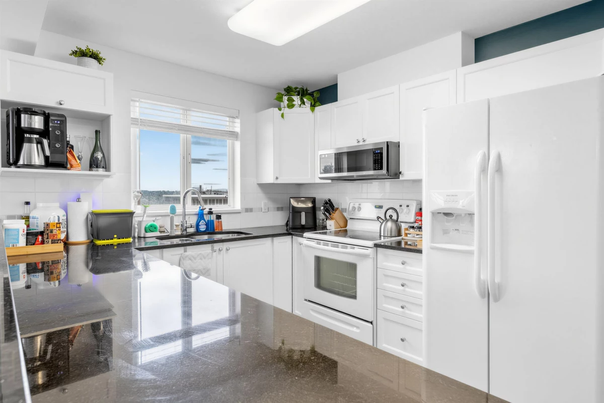 A fantastic opportunity for first-time buyers or investors alike! Welcome to Willowgate—a bright and beautifully 1-bedroom, 744 sq ft home offering comfortable and functional living. This unit features northeast exposure, mountain views, and a spacious L-shaped balcony perfect for relaxing or entertaining. The open-concept kitchen flows seamlessly into the living area, complete with a cozy gas fireplace (gas included in strata fees) and a generously sized bedroom. Includes 1 parking stall. Located in an unbeatable, walkable neighbourhood—just steps to Willowbrook Mall, Superstore, restaurants, and transit, and only a few blocks from the future SkyTrain.