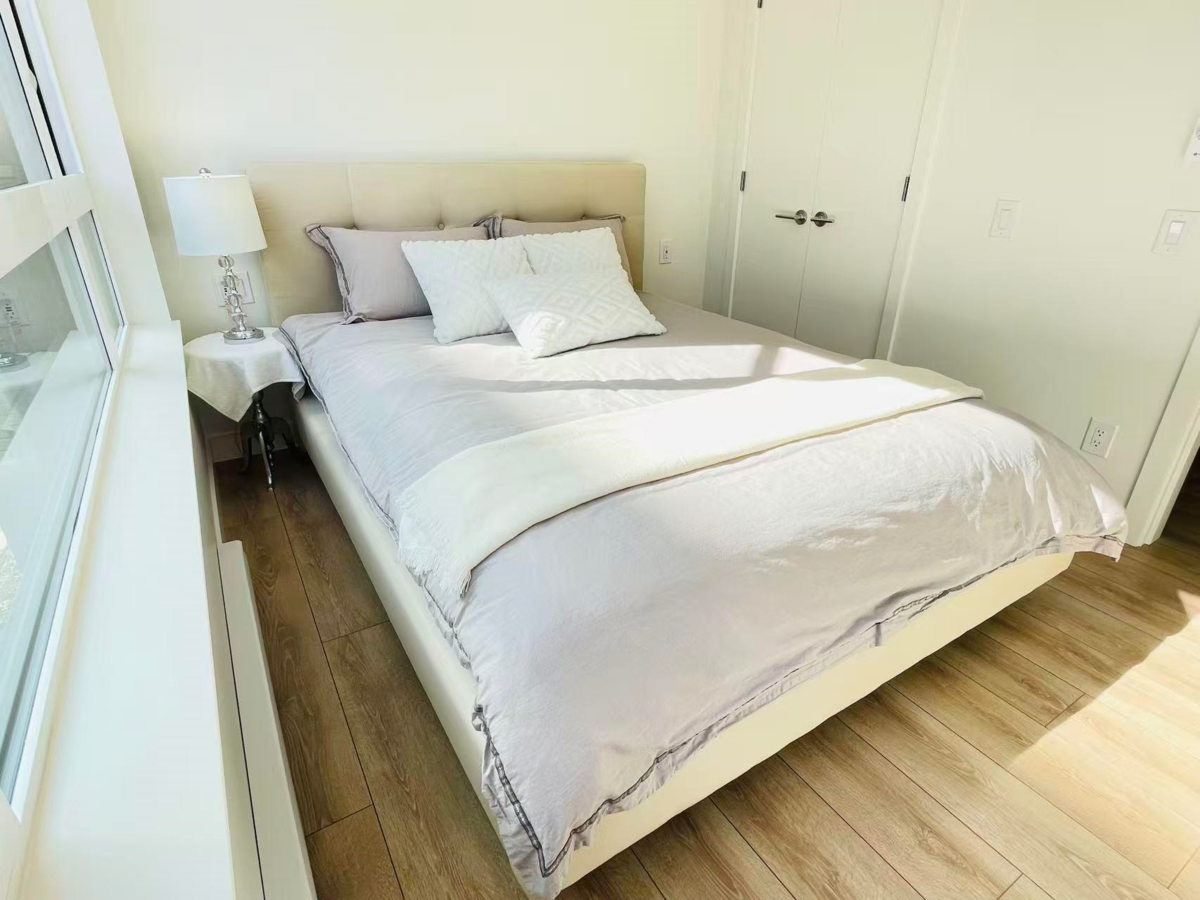 Welcome to The Oaks by Strand! This south-facing 2 bed+2 bath suite facing the quiet courtyard features a rare functional layout. Upgraded laminate floors. Amenities include: game room, party room, movie theater, co-working space, gym, and more. Conveniently located with easy access to SkyTrain, shopping mall, schools, parks, restaurants, groceries store, and SFU. Tenanted Property. Please allow at least 48hrs notice for showings.