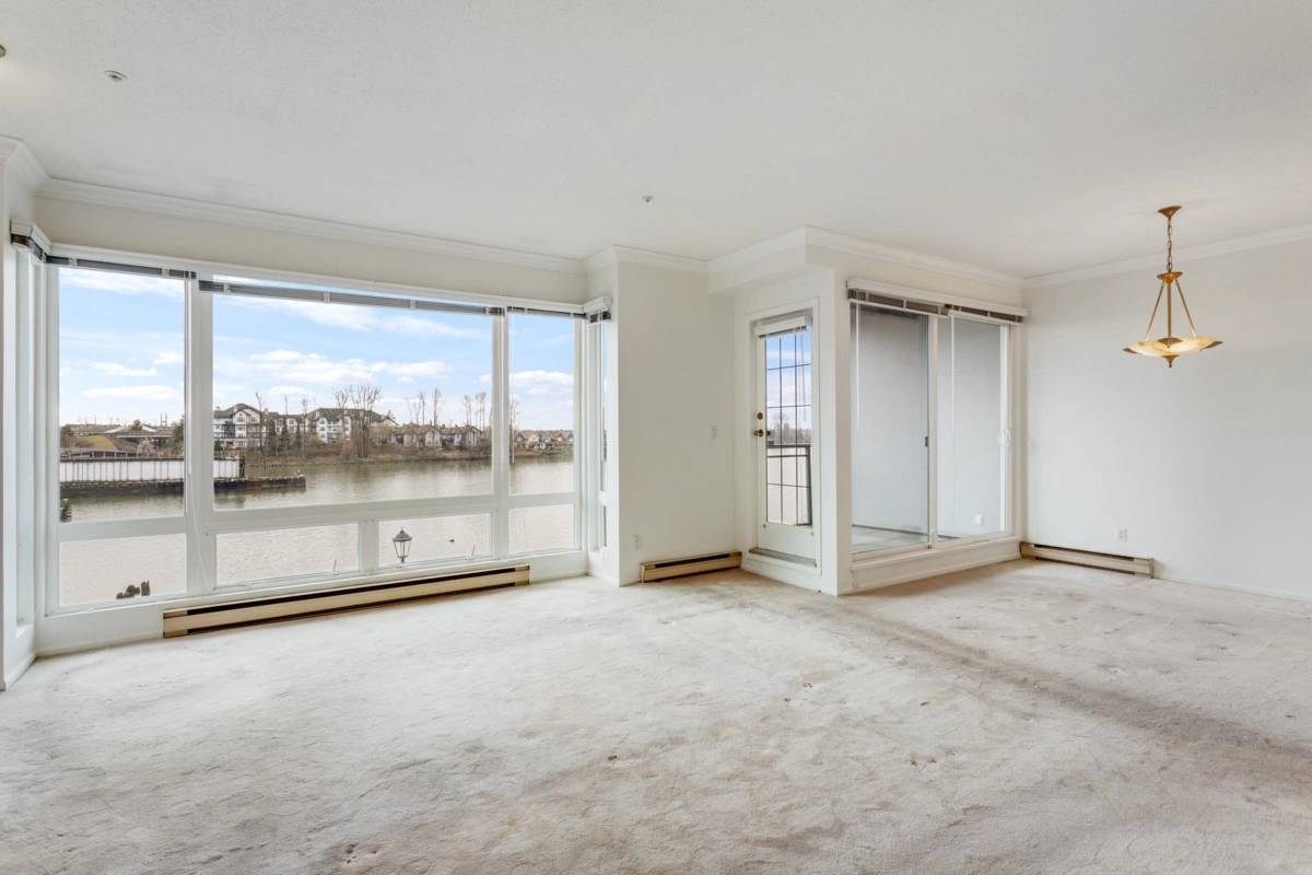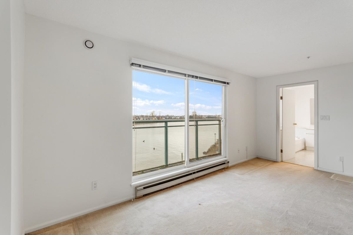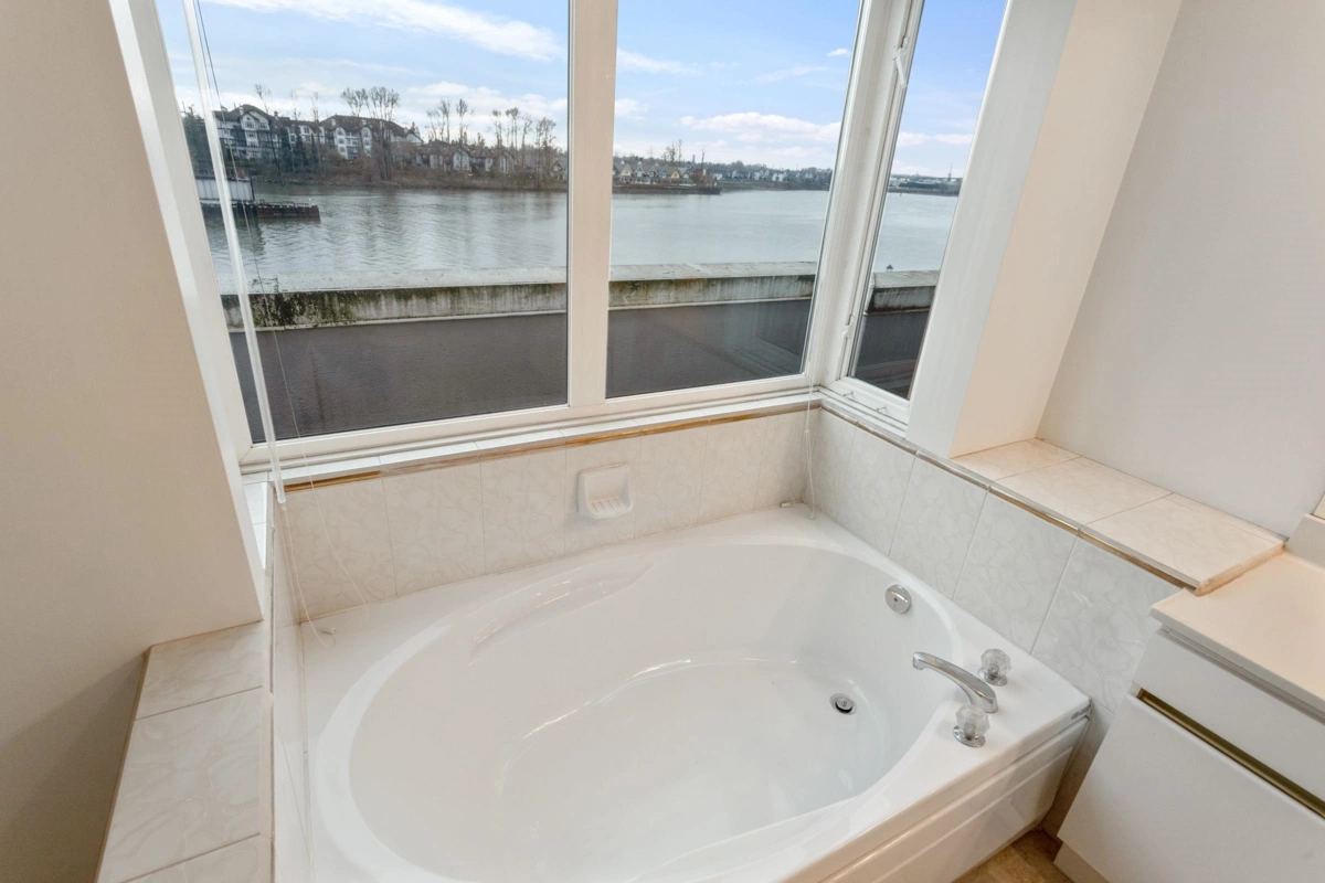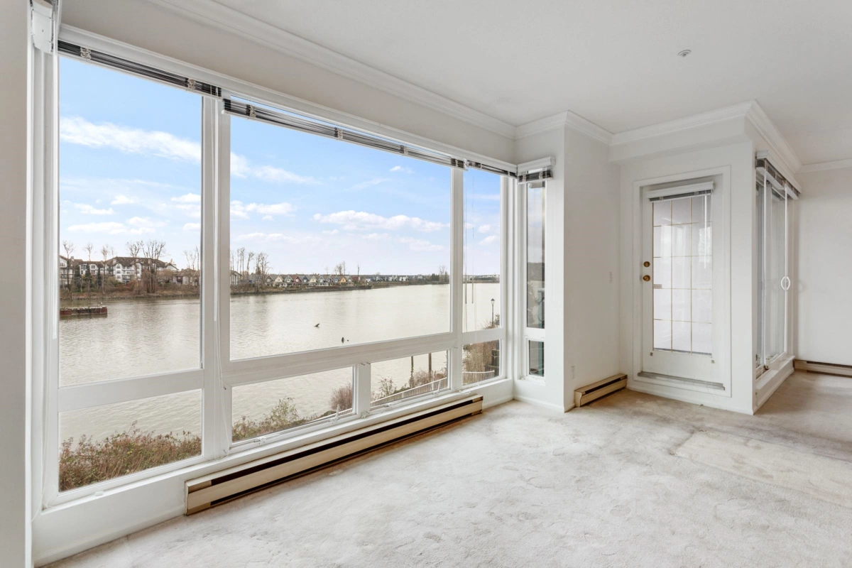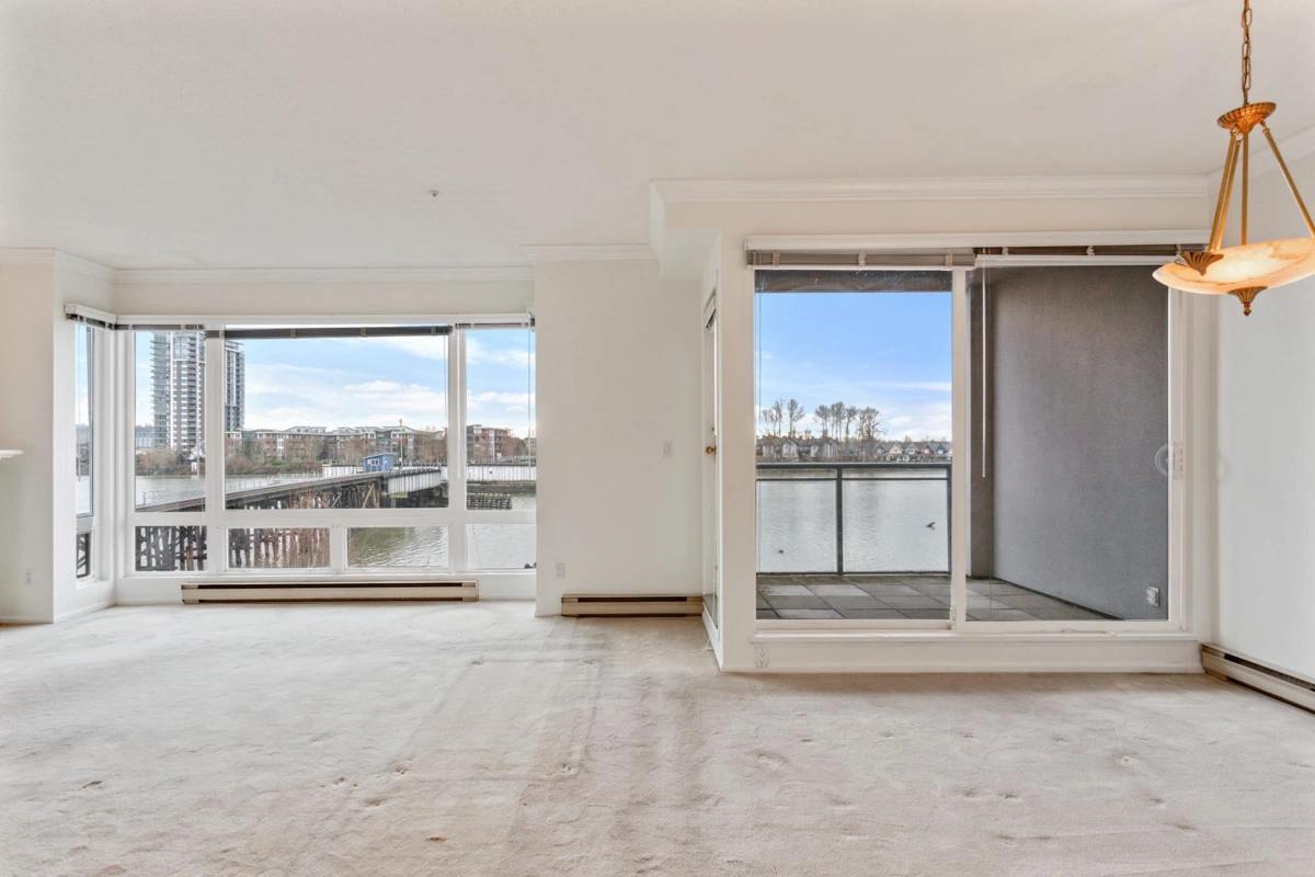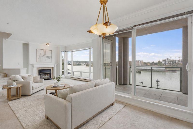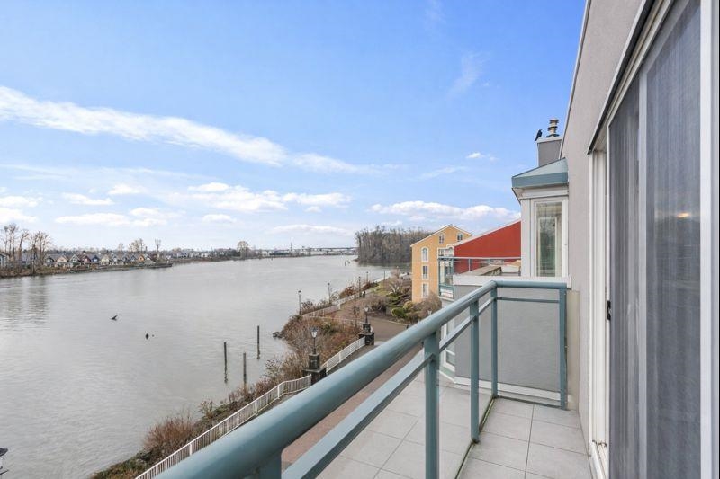 Wake up every day to sweeping 180° Fraser River views from this truly special two level condo at the Quay. Over 1500 sq ft across two levels gives rare space, light, and separation that feels more like a townhome than a condo. Floor to ceiling windows frame the river from both floors, setting the scene from morning coffee to sunset evenings. Freshly painted and one owner loved, with a vintage kitchen ready for your vision, full laundry with side by side machines, and a powder room on the main. Both bedrooms have private ensuites, plus an oversized bathtub with river views for the best wind downs. Pet friendly. Enjoy resort style amenities with indoor pool, hot tub, gym, and library, then step out to the boardwalk, River Market, cafes, shops, and transit. Incl 1 parking. *OH: Sun 1-3 PM*